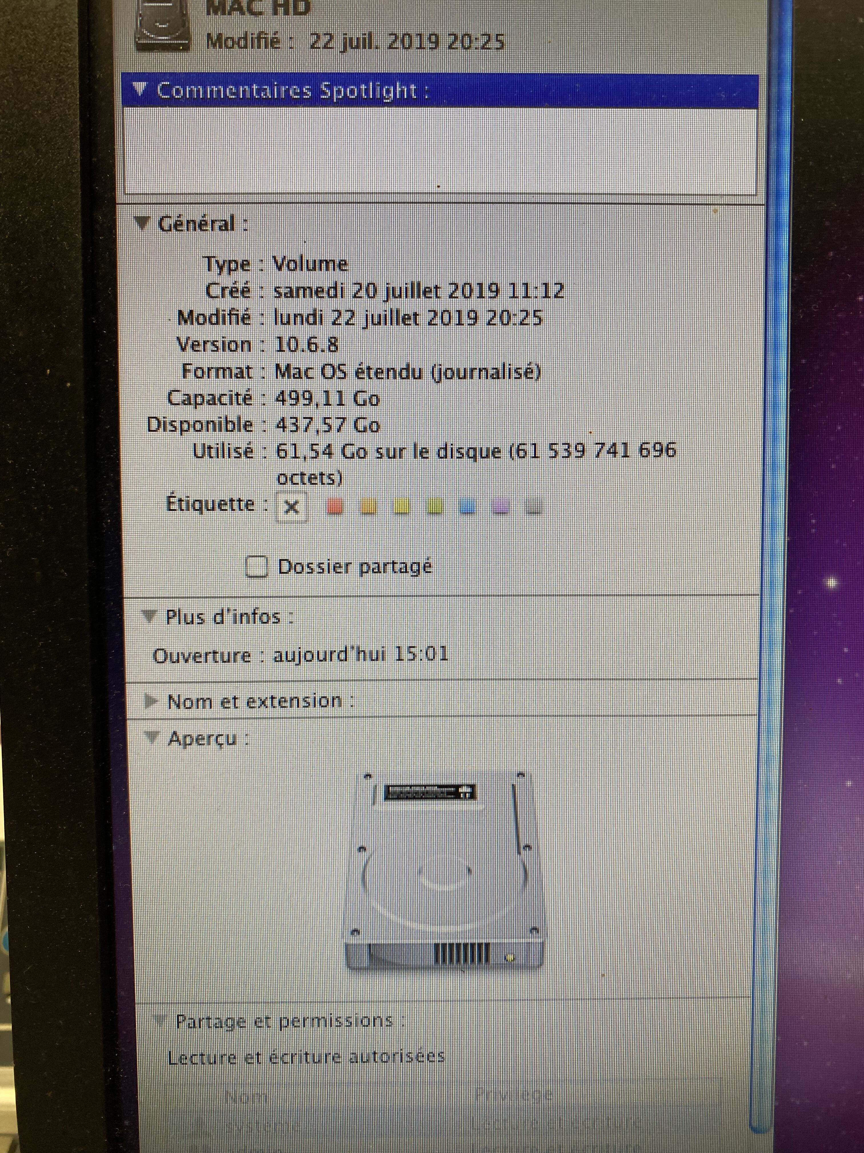 J'ai aussi le disque d'installation leopard si vous voulez le remettre à zéro d'origine.
