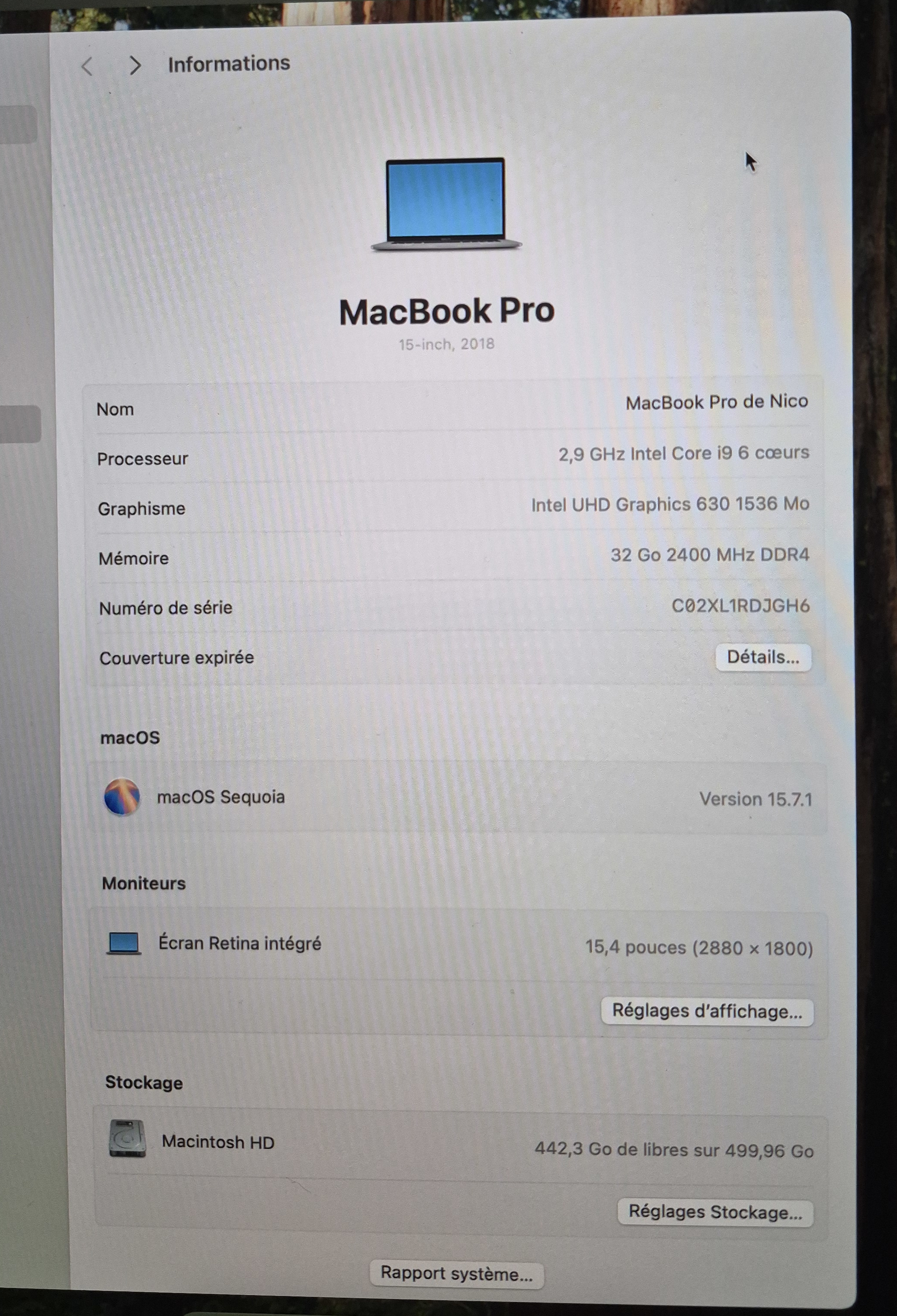 Je vends mon MacBook Pro 15 pouces de 2018 en très bon état, cause passage à Linux pour utilisation pro.- Processeur : Core i9 2,9 GHz