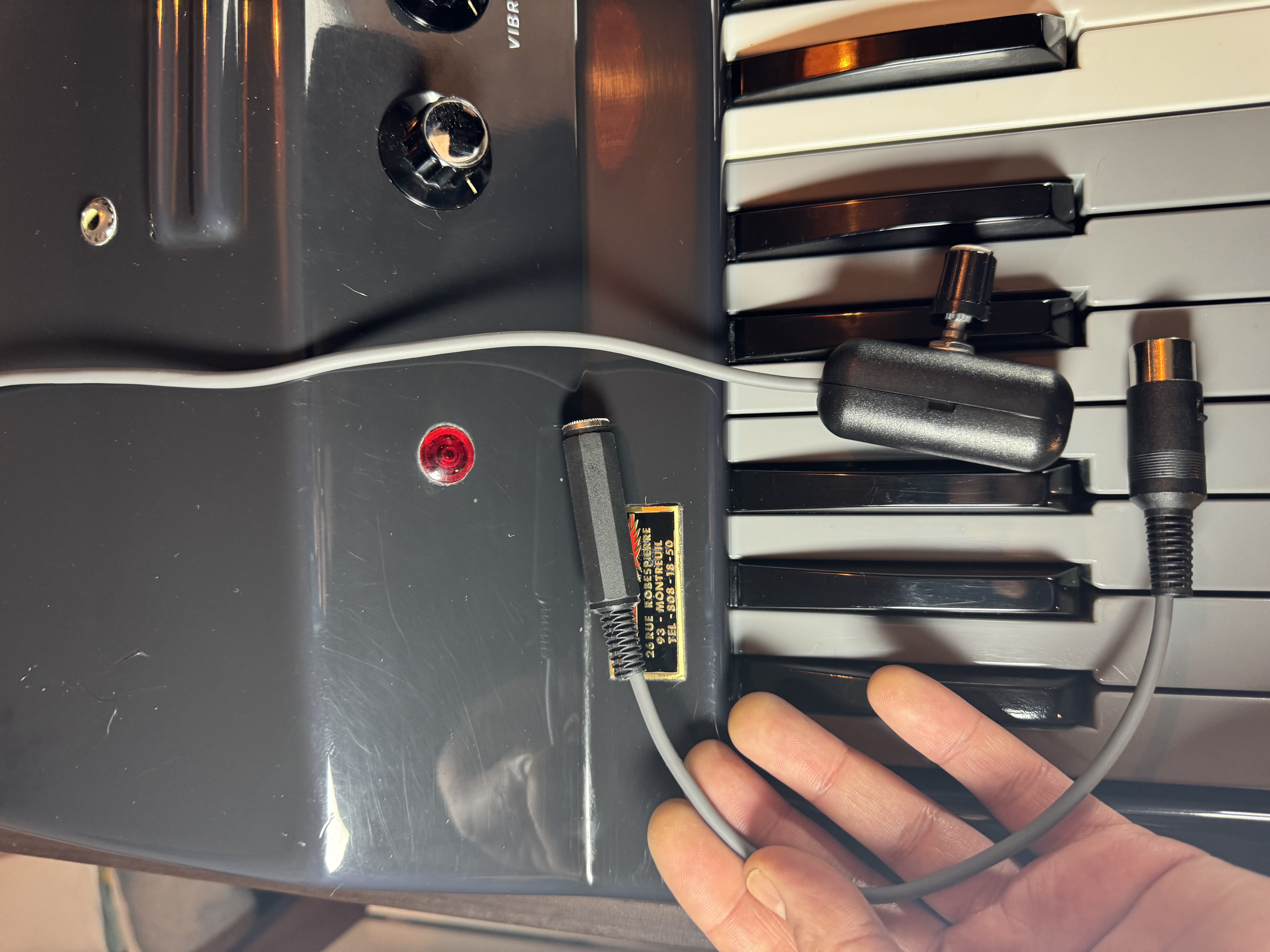 Un adaptateur a également été réalisé afin de permettre l’utilisation d’une pédale d’expression moderne.