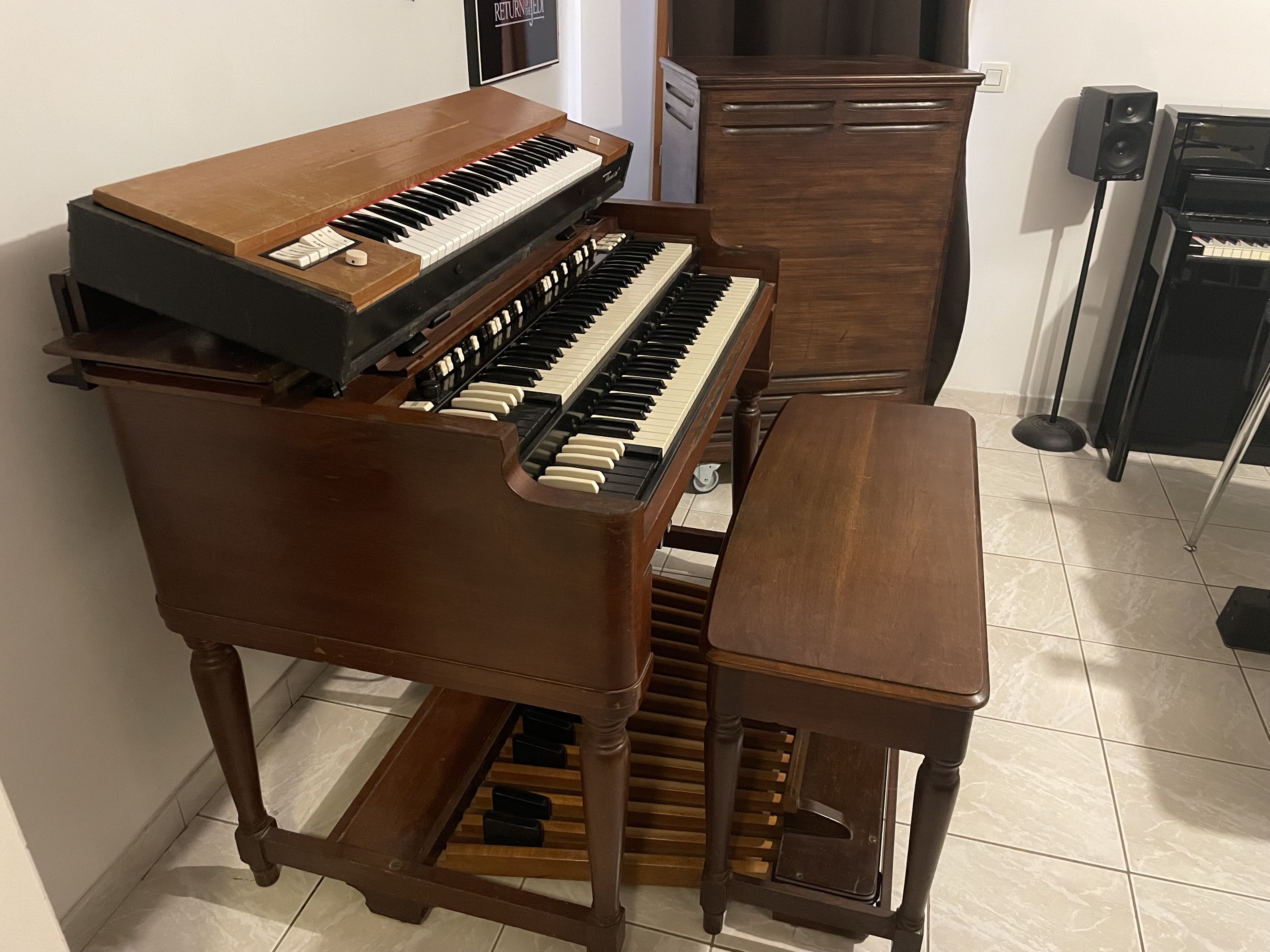 L'orgue est en RDC de maison, accès direct vers l'extérieur depuis le studio mais Il vous appartient d'organiser le retrait de l'orgue et de sa Leslie en cas de vente, avec paiement préalable.