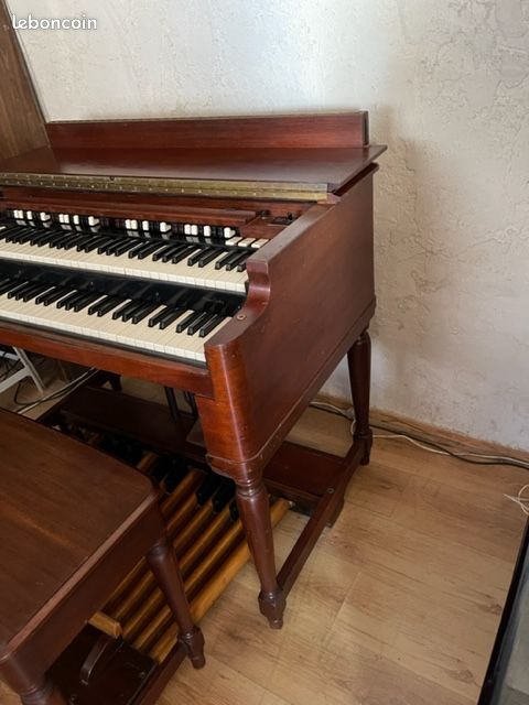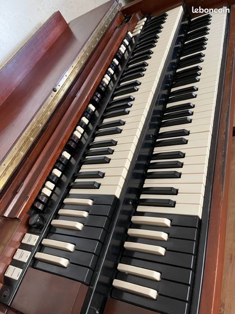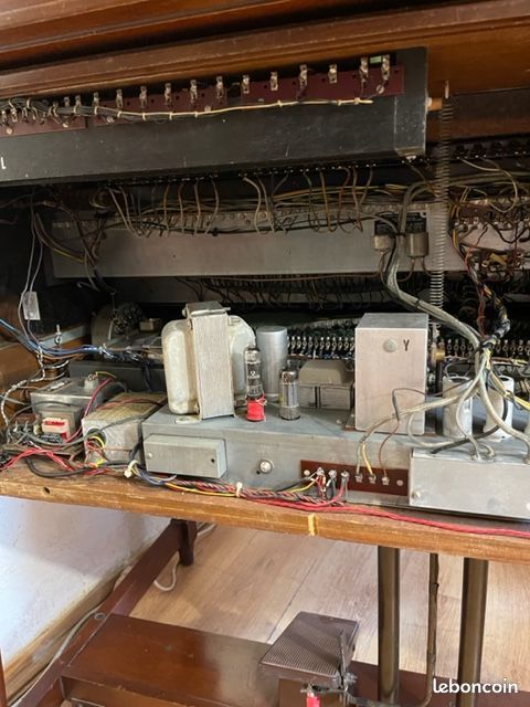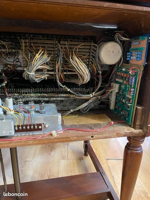 Vends cet orgue de légende en parfait état, pédalier compris, et sa Leslie 122 correspondante. Acheté révisé et entretenu à un professionnel du Hammond français bien connu en 2022. L'orgue porte le numéro de série 57444.Les condensateurs d'origine ont été remplacés en 2022 pour éviter l'intermodulation des orgues de ce millésime. Cela clarifie et donne une meilleure qualité de son, plus de graves et de pêche dans les aiguës. L'orgue est équipé d'un string Bass trek II (Synthé basse analogique bien gras que l'on rajoute aux sons du pédalier, les tirettes supplémentaires sont installés en haut à gauche), et d'un footswitch de commande de vitesses sur la pédale d'expression. L'orgue a été régulièrement entretenu. Il est en 220V et possède une sortie ligne, pratique pour faire passer l'orgue dans un DI, un effet, un ordi, etc.