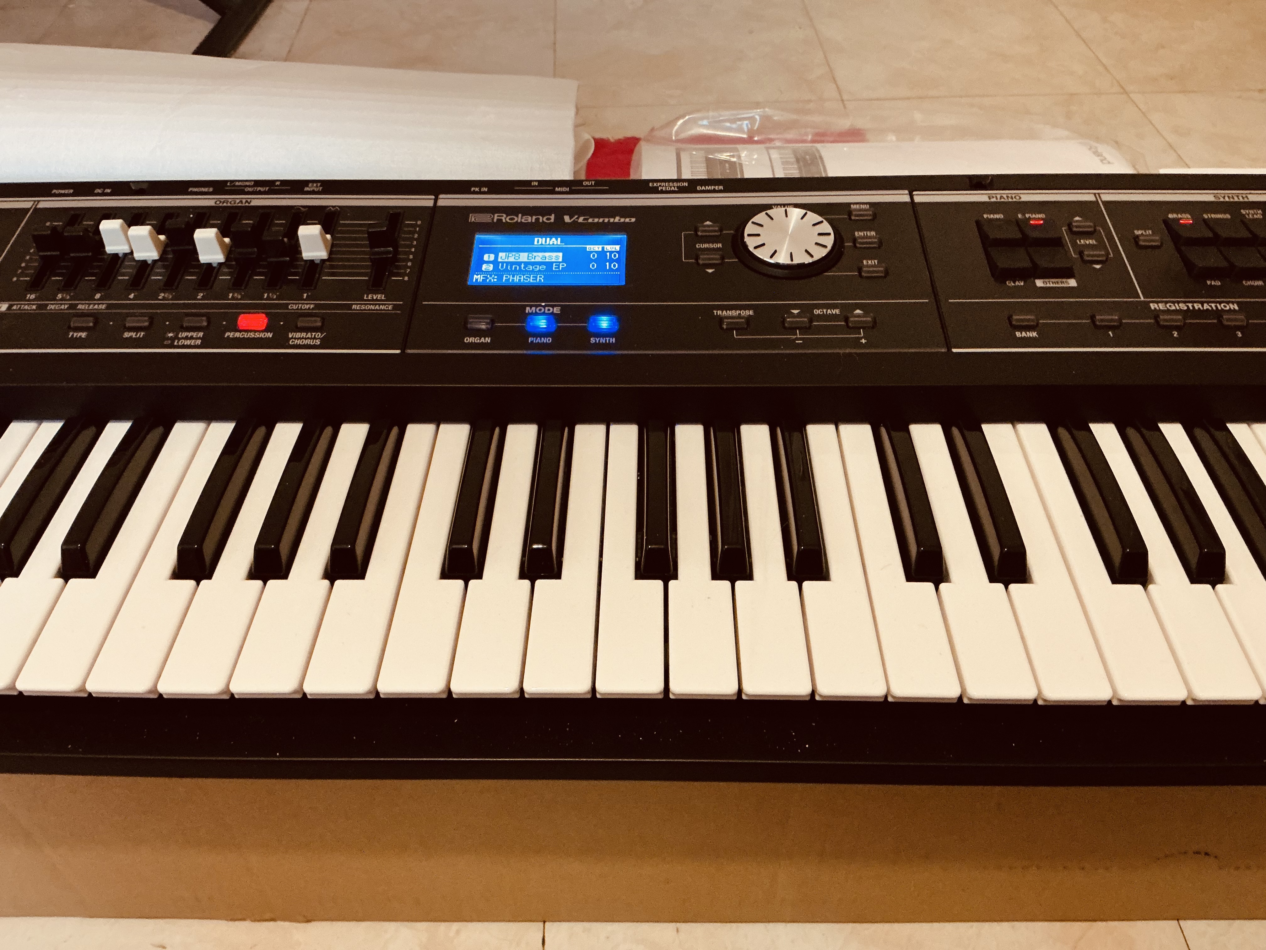 Mais le TRES gros défaut, c'est l'implémentation midi : je n'avais plus eu de Roland depuis longtemps, et dans mon idée tous les potards / fader d'un synthé était automatiquement associés à un Control Change (c'est vrai sur mes Korg)... B'en pas là. Du coup, très bien pour la scène mais à la maison si tu veux contrôler un VB3-II, il faut trouver un moyen de convertir les SysEx des tirettes harmoniques en CC ==> nul pour un synthé sorti en 2017 (la v2).