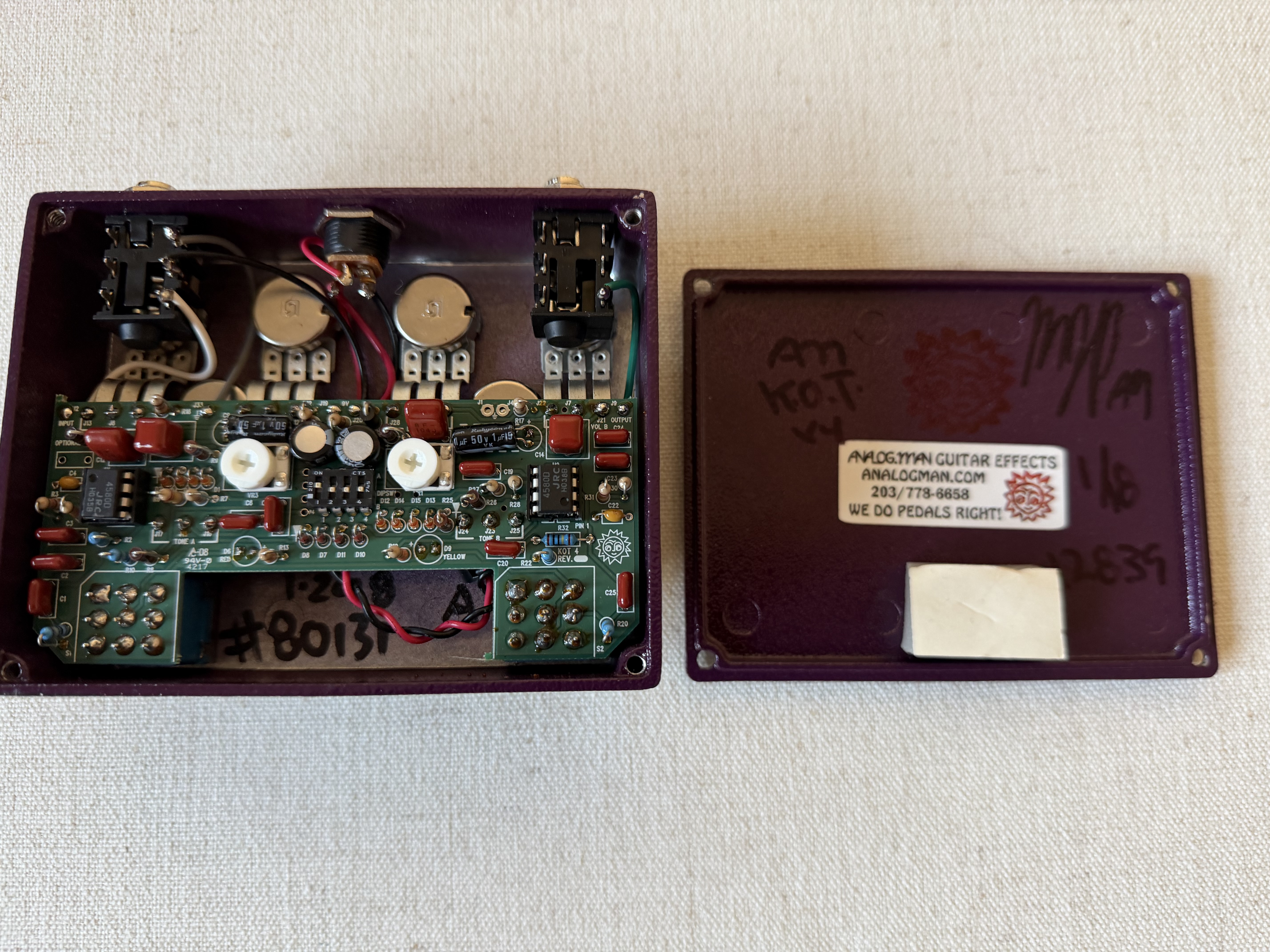 Je vends une Analogman King Of Tone V4 2-switch en version normal gain sur les 2 canaux.