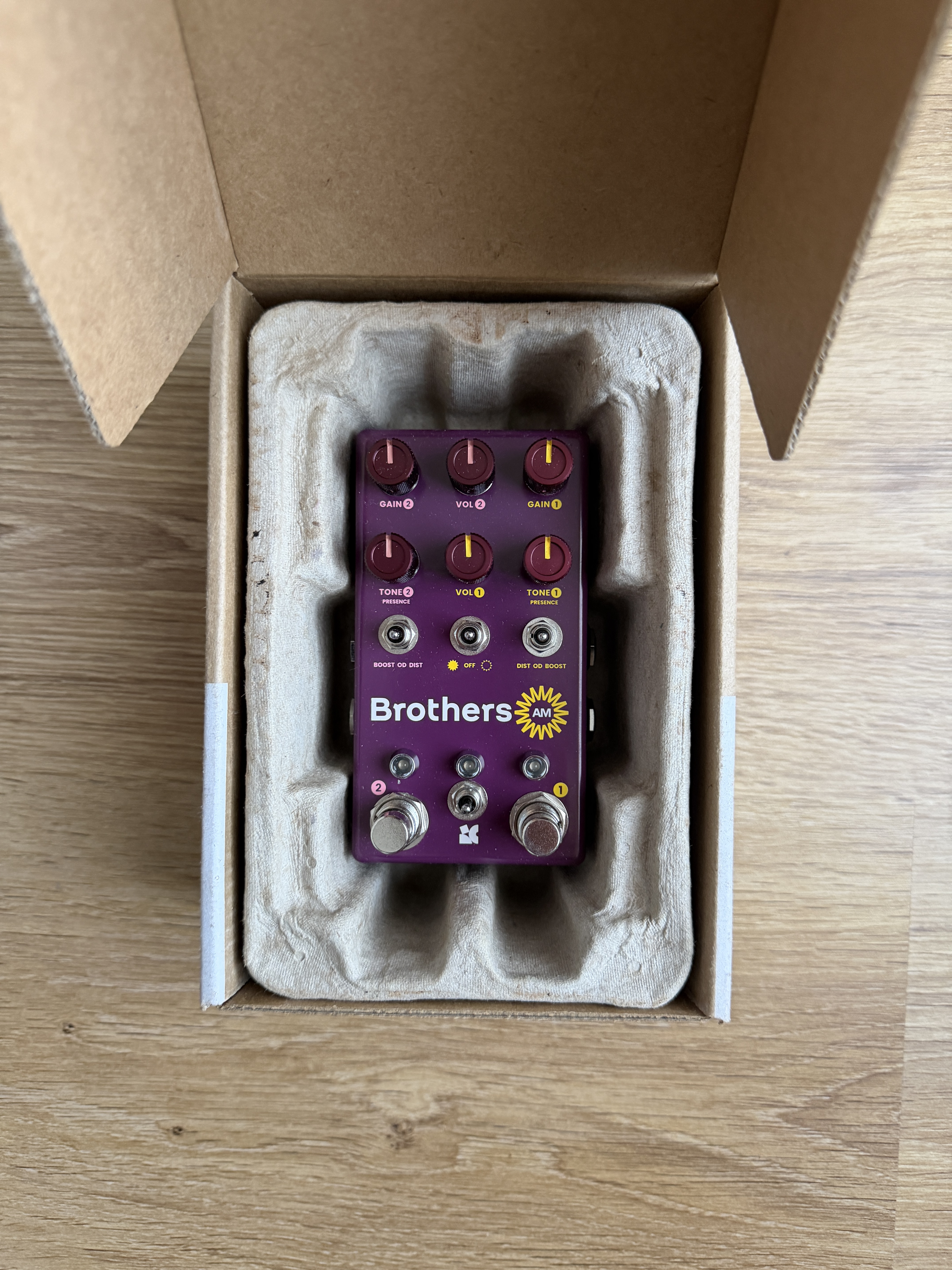 Je vends cette pédale d’overdrive à 2 canaux Brothers AM, collaboration entre Chase Bliss et Analog Man.La pédale est neuve et sera vendue dans sa boîte d’origine avec la notice.