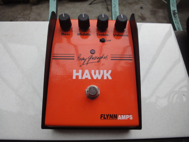 Sur le modèle d'origine il existait des fonctions de type tonalité, drive, en plus des contrôle de fréquences qui n'ont pas été réédité sur le modèle de FLYNN AMP et c'est là qu'intervient les améliorations de mon clone. Enfin FLYNN AMP HAWK BOOST est une pédale analogique fait en PCB, non en point to point, il y'a beaucoup de marketing autour de ce modèle fait par la société, autour de la rencontre entre le frère de Rory, Donal, son neveu à Londres avec les gens de FLYNN AMP.