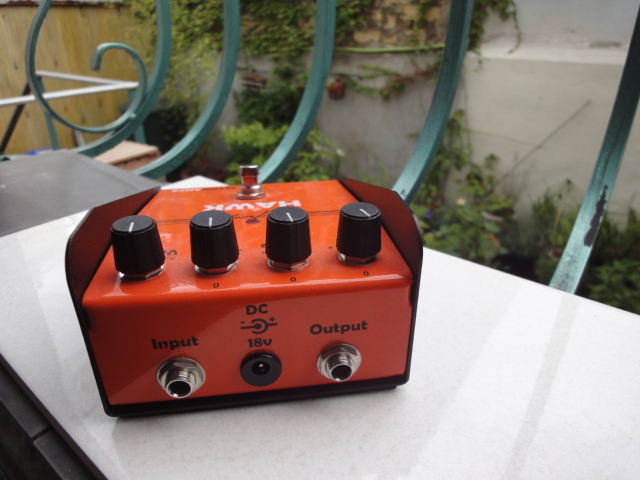En mars 2008, nous nous sommes rendus à Londres dans le but de tenter de recréer le Treble booster préféré de Rory Gallagher, le «Hawk». Avec l’aide du frère de Rory, Donal Gallagher, Tom O’Driscoll (technicien du groupe) et Daniel Gallagher (fils du musicien de Donal), nous avons minutieusement photographié et mesuré chaque élément du Hawk original de Rory. De ces photographies et dessins, notre booster Hawk, signature de Rory Gallagher, est né. Conçu comme un appareil polyvalent, le Hawk devait être utilisé avec des guitares, des claviers, des voix et des tables de mixage. L’alimentation 18 V signifiait que le Hawk était capable d’atteindre des niveaux de sortie massifs et Rory a découvert qu’il pouvait saturer l’entrée de tout ampli à lampes avec lequel il l’utilisait. Des harmoniques riches, une dynamique étendue, un maintien lisse et un bord mordant sont tous contrôlés à partir du contrôle du volume de la guitare. Rory l'a utilisé principalement avec ses amplis Tweed Fender, mais il peut entraîner la plupart des amplis à lampes dans les sons Rory classiques. Le Hawk était un appareil «set and forget» qui resterait normalement allumé en permanence. Pour une utilisation avec une guitare, il serait utilisé en dernier place dans la chaîne d’effets entraînant l’ampli avec intensité. À partir de 1973 environ, Rory utilise le Hawk presque exclusivement, en live et en studio. C’est un son de guitare clair mais très puissant, précis, naturel et totalement unique à la musique de Rory.»