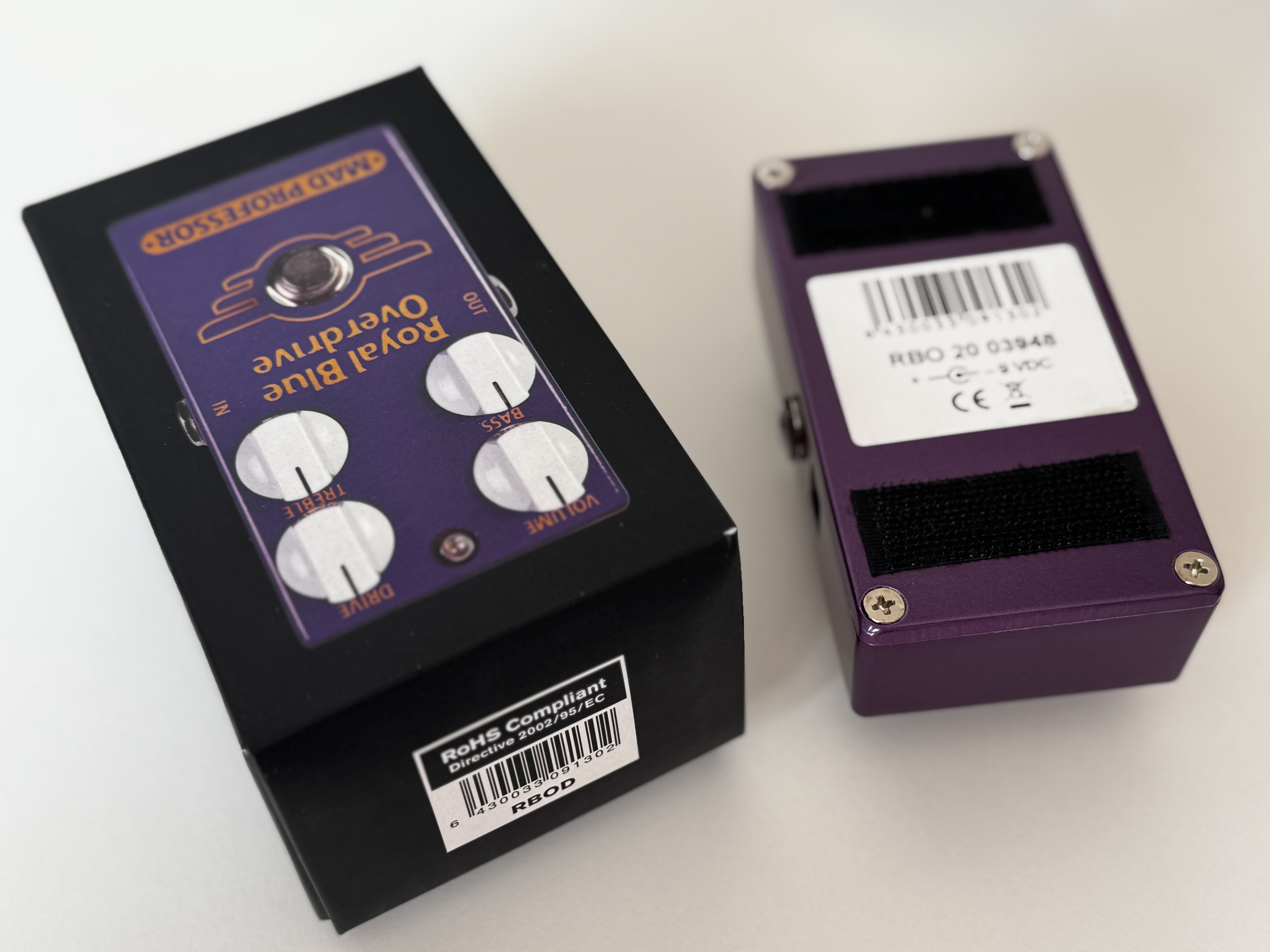 Livrée dans sa boite d'origine. J'ai ajouté une photo de la boite car il existe des copies Chinoises de cette pédale vendues à des tarifs nettement inférieurs. Celle-ci n'est pas une copie.