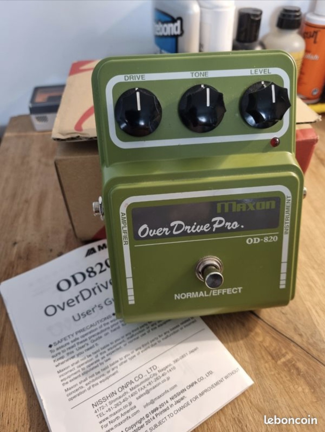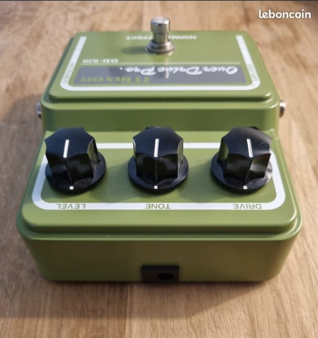 Maxon OD-820 , overdrive/clean boost de chez Maxon , une TS-9 pro très proche de la Klon Centaure dans la conception ( doubleur de voltage pour plus de headroom , dual gang potentiometer pour le drive ...) .