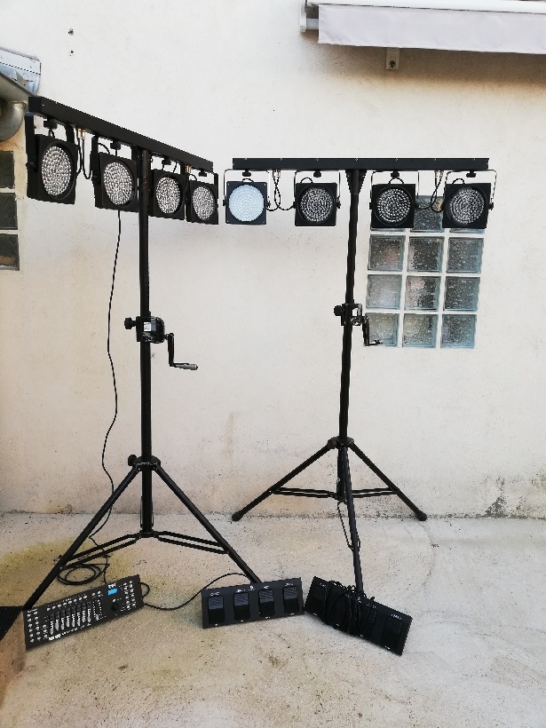 bonjour je vends 2 barres setpar led mac mah 2x 4 projecteurs de 70 watts par projecteur avec pédalier et housse sur pied stand K&M (hauteur minimum 1,40m maximum 2,20m poids supporté 50 kgsje suis de betheniville 51490 30kms de reims axe reims-rethel (08) et vouziers (08)