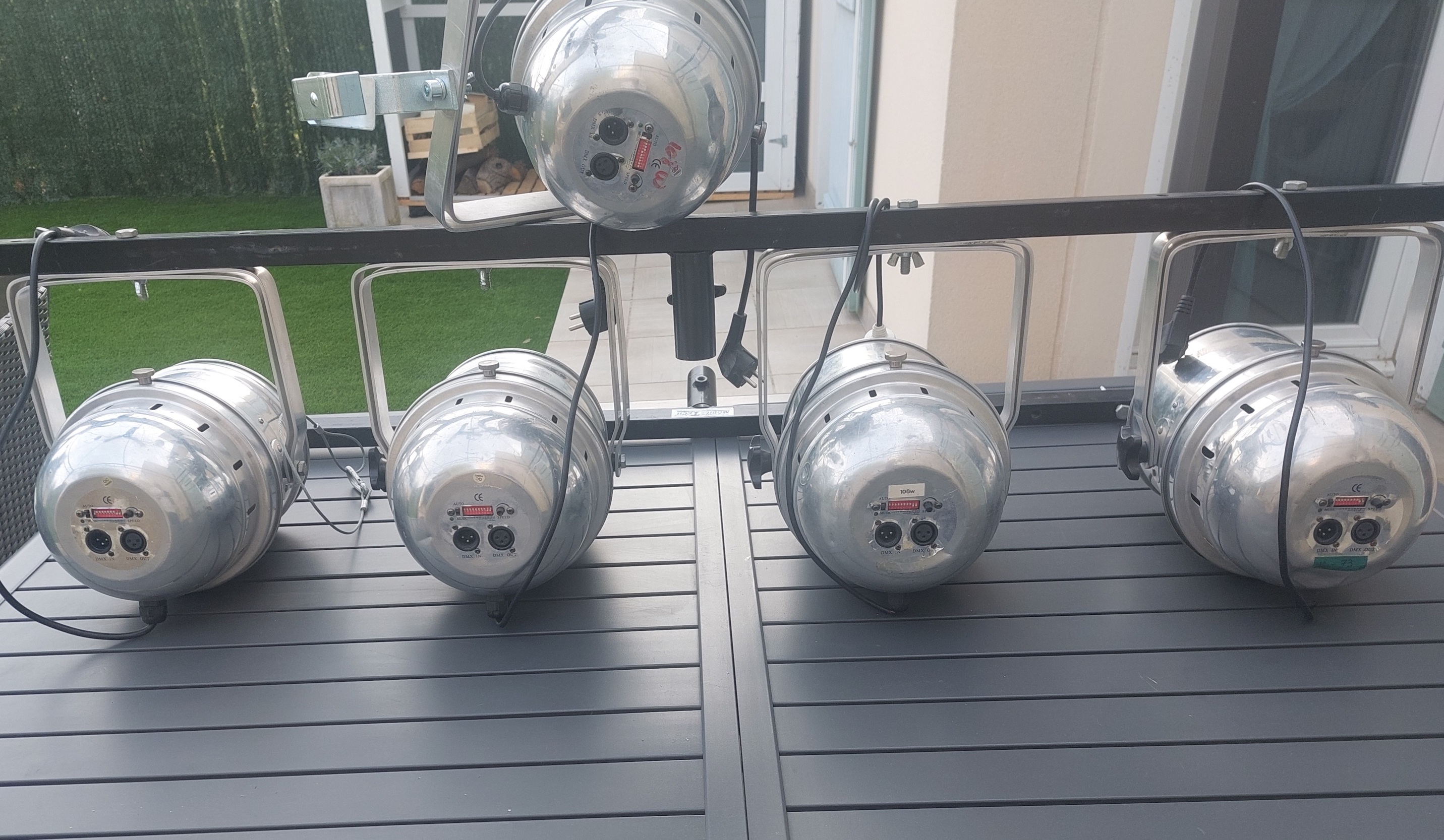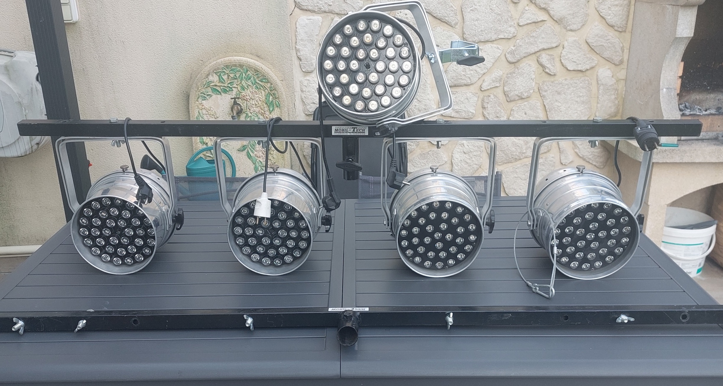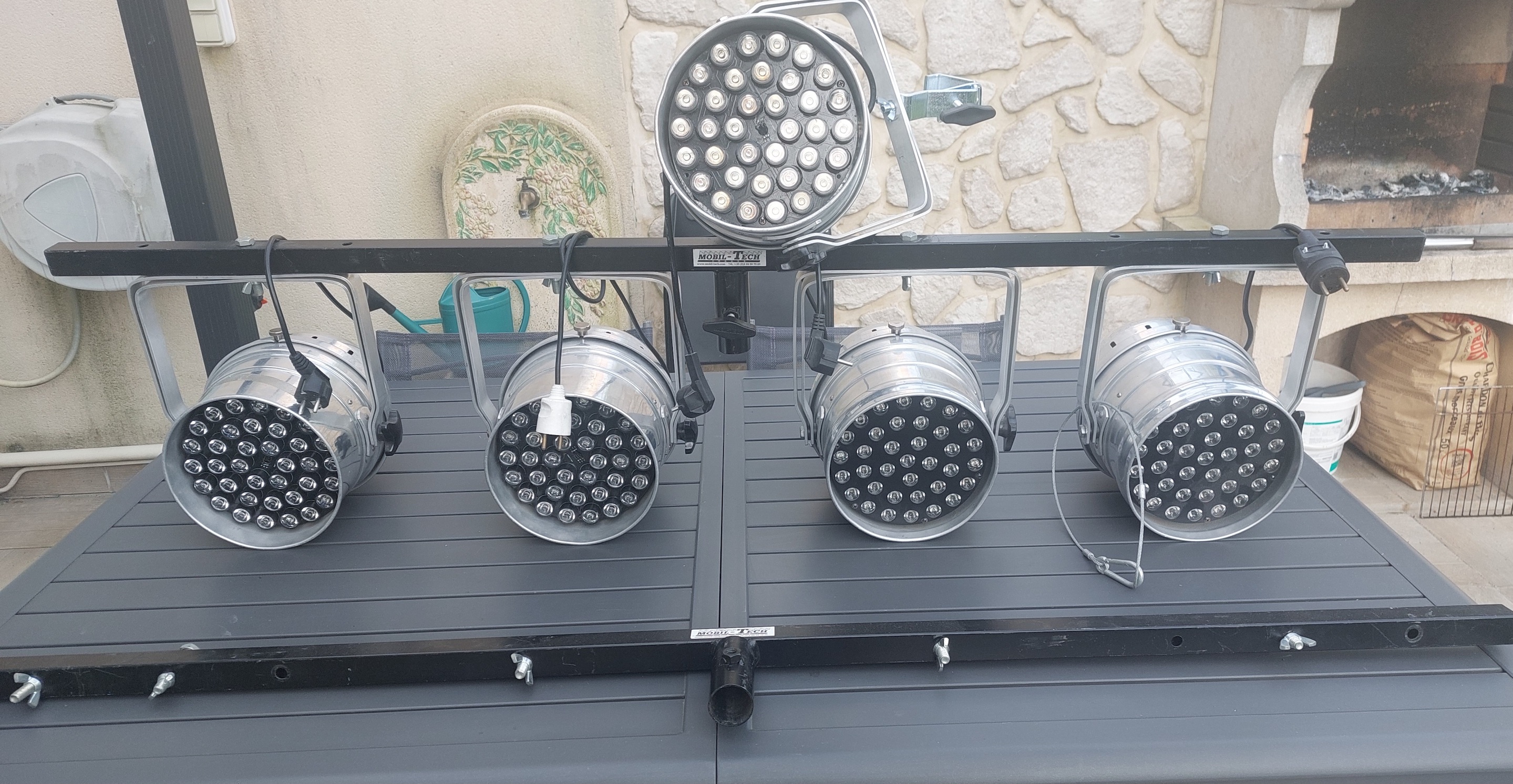 Vends 5 projecteurs PAR (36 Leds multicolor) DMX avec 2 barres de support + 2 pieds Mobiltech.Prix : 330€