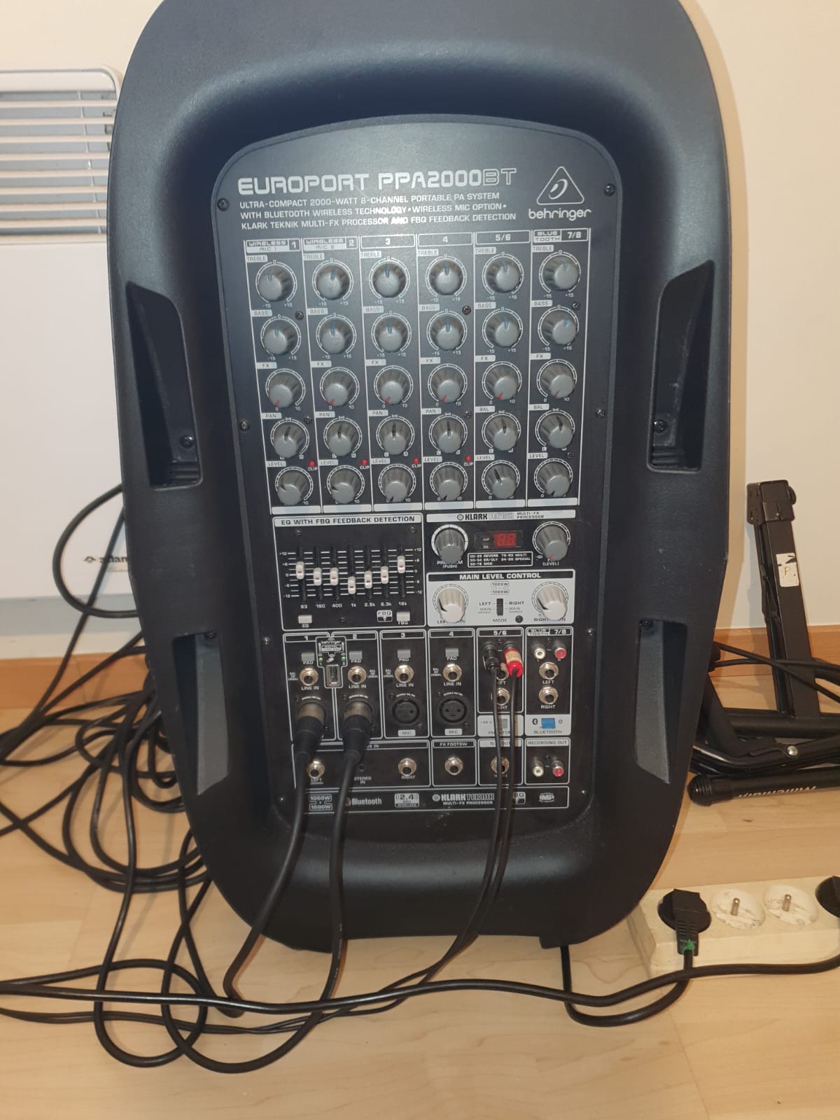 Vends sono complète Behringer Europort PPA2000BT puissance 2000 w avec table mixage intégrée.