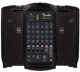 Pour les salles plus grandes et les groupes ayant besoin de plus de canaux, Fender propose le Passport Event, un modèle de 375W en Classe D avec mixer de 7 canaux, dont une entrée haute impédance pour brancher une guitare et connectivité Bluetooth intégrée. Il offre 4 entrées micro/ligne sur jack et XLR, une entrée instrument/ligne sur jack 6.35mm, une entrée stéréo sur jack 6.35, une autre sur mini-jack 3.5mm ainsi qu’une sortie casque sur mini-jack 3.5mm avec contrôle du volume, une sortie mono sur jack 6.35mm et une sortie pour subwoofer sur jack 6.35mm avec un filtre passe-haut automatique. Une réverbe est également au menu et vous pourrez régler le volume, les aigus, les basses, le niveau de la réverbe et le pad de –20dB sur chaque canal, ainsi que le volume global.