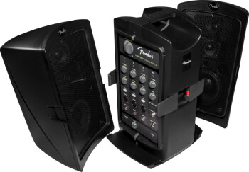 Cet ensemble est composé de deux enceintes, chacune avec un woofer de 5.25” et deux tweeters de 2.75”. Un ampli de 175W en classe D est intégré, ainsi qu’une console 5 canaux avec entrées XLR (x3) et jack 6.35mm (x5), entrée stéréo mini-jack 3.5mm et sortie stéréo mini-jack 3.5mm pour le monitoring au casque. Chaque canal dispose de son contrôle de tonalité, vous trouverez de plus un volume global et un pad de –20dB.