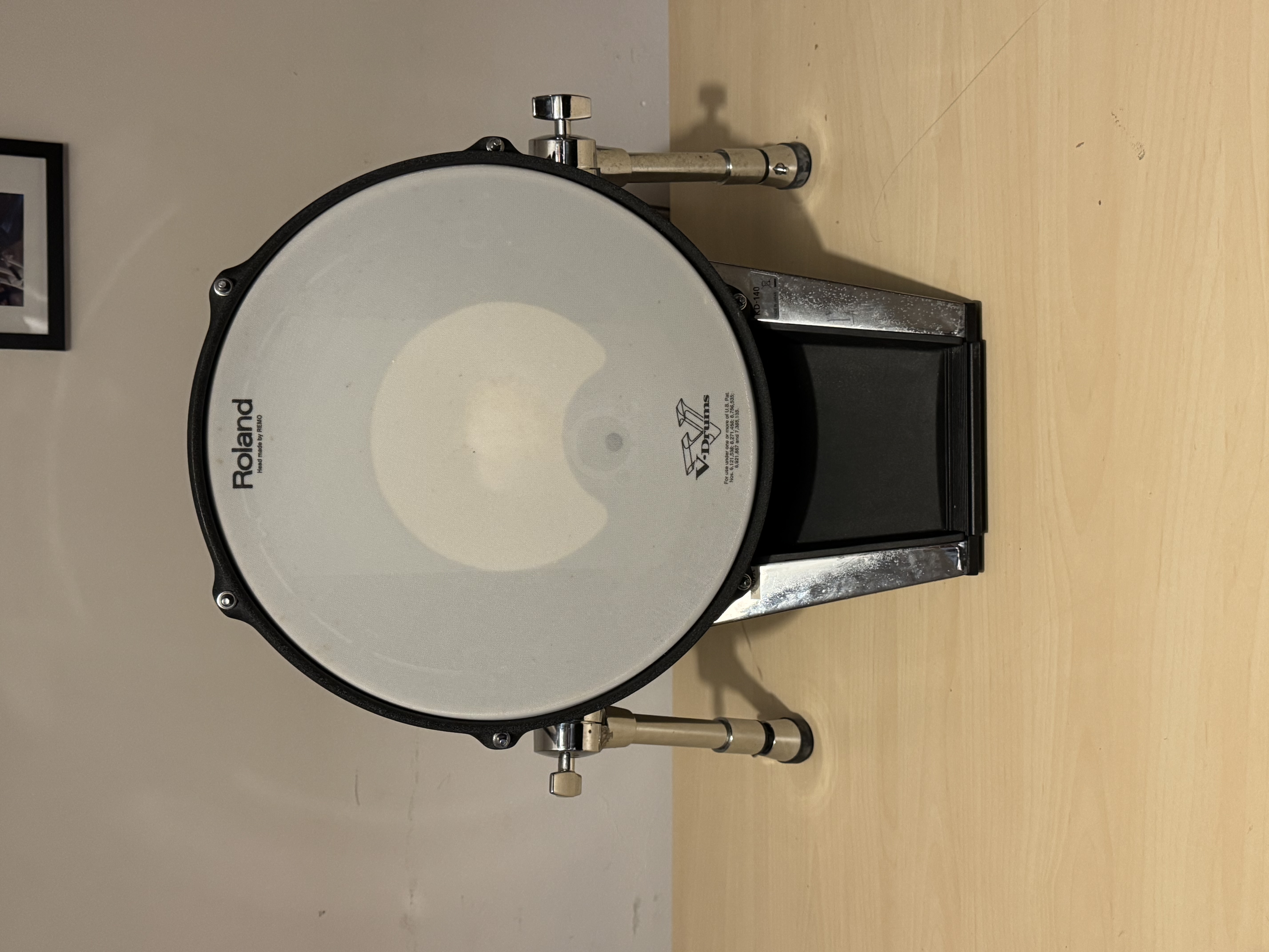 Attention monstre de 11Kg (50cm de haut !), ultra stable. Pad de grosse caisse Roland KD-140 (série V-Kick), diamètre 14", avec vraie peau maillée et châssis métal très robuste pour une sensation proche d’une grosse caisse acoustique.Surface de frappe large et très réactive, parfaite pour les doubles pédales et le jeu puissant comme pour les nuances plus légères.