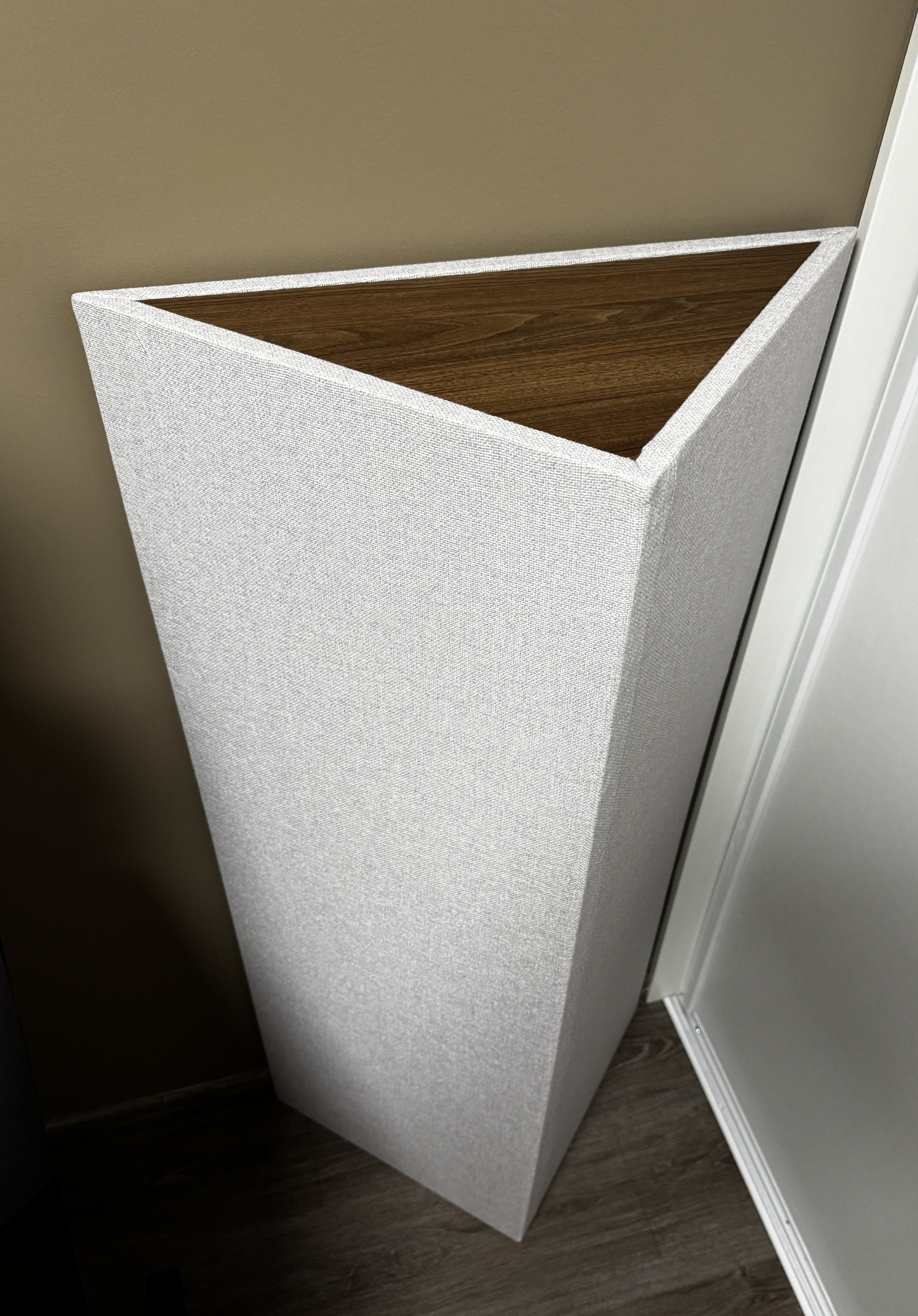 Je vends 4 Bass Traps d'angle TriTrap couleur « clan » et finition « noyer » de chez GIK Acoustics