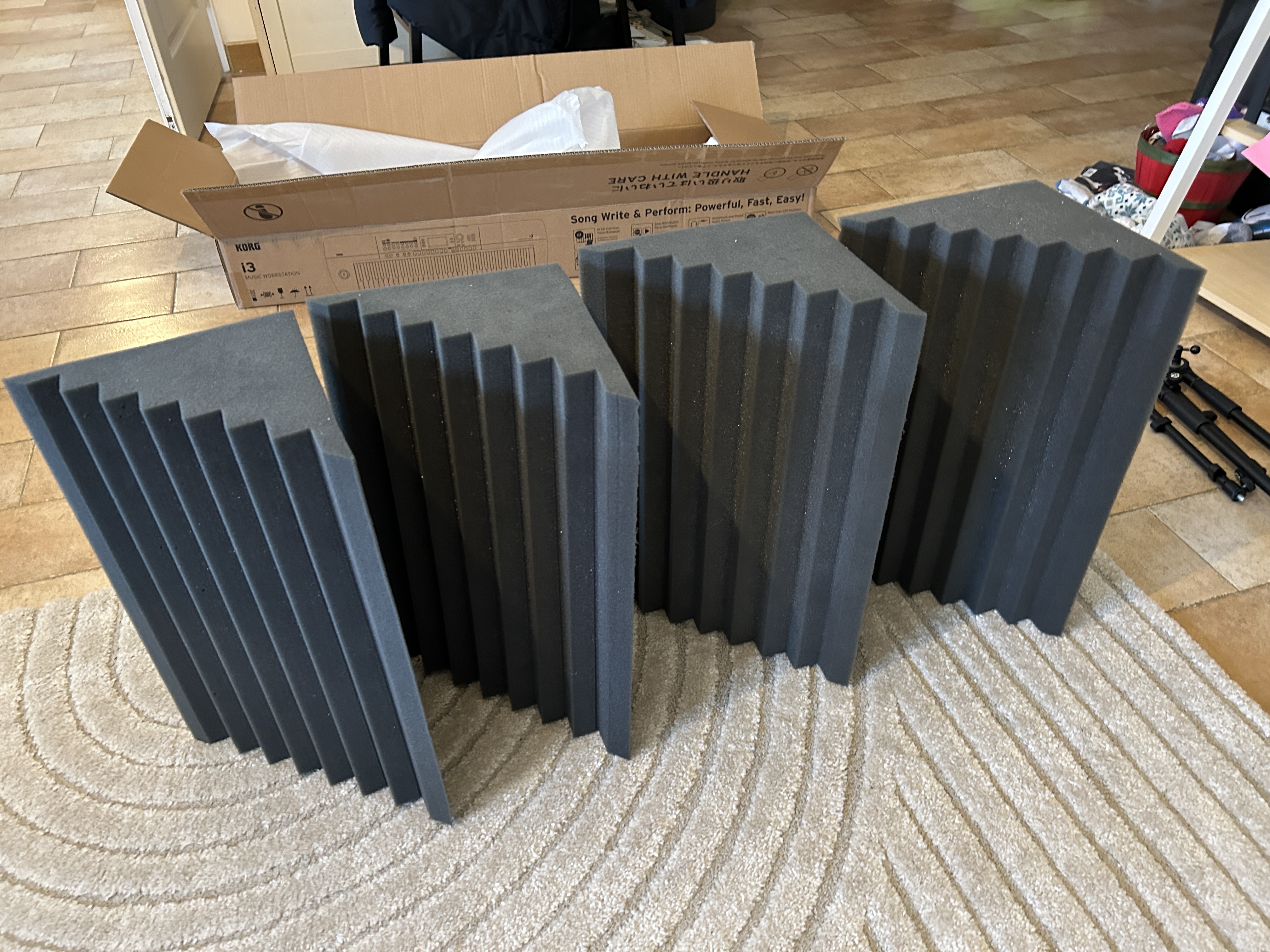 Un lot de mousse acoustique diverse, légèrement usagé, dont je n'ai plus besoin. Valeur initiale estimée à ≈150-200 €