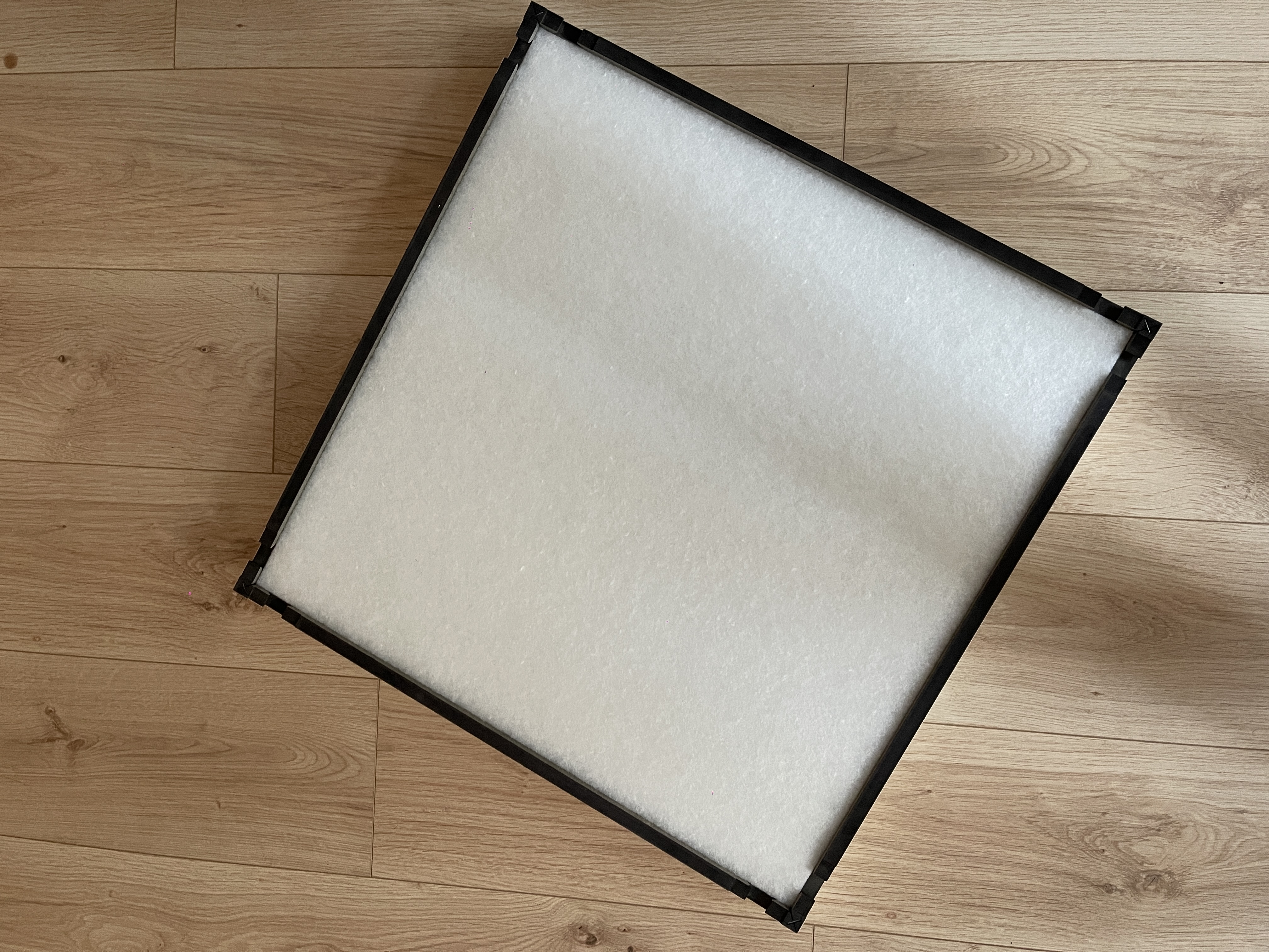 Dimensions : 60 × 60 × 5 cm. Jamais collés, uniquement posés pour tests de placement.