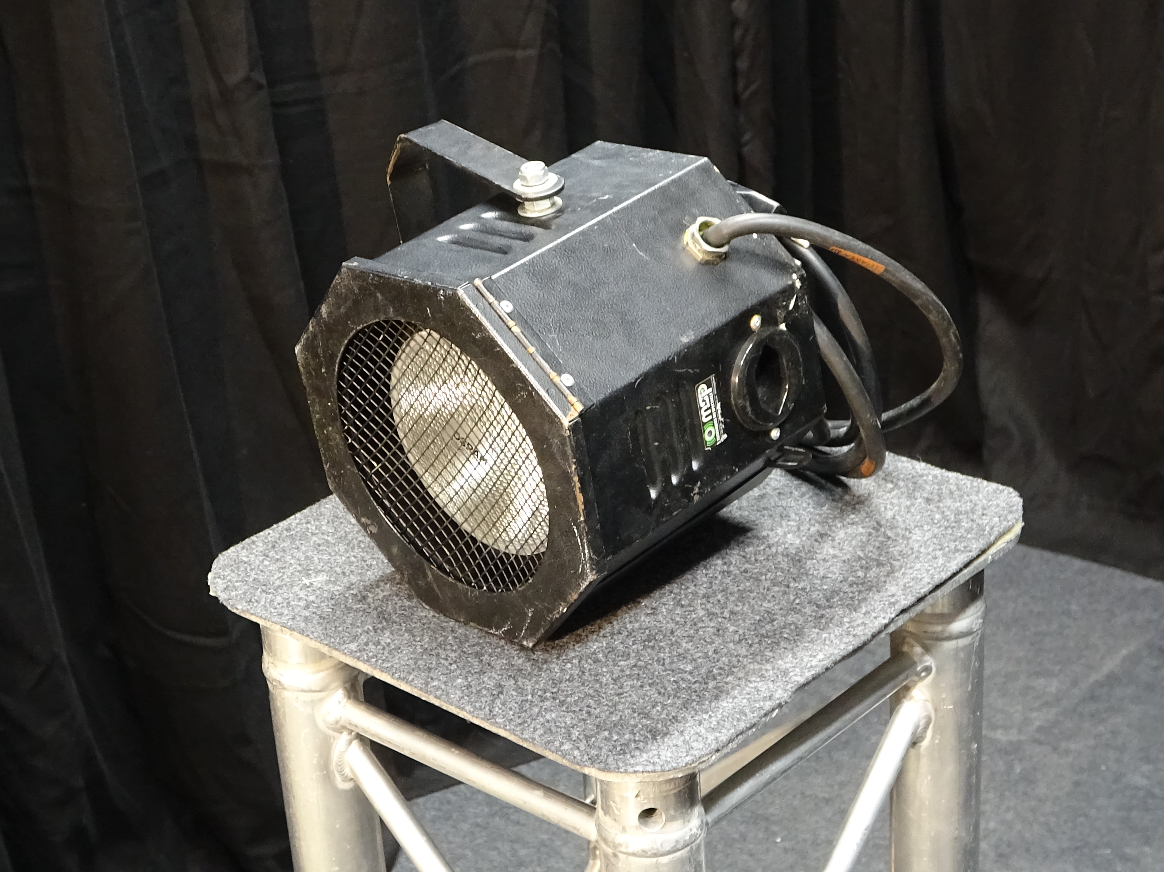 Projecteur équipé d'une prise encastrée sur le projecteur pour faire une "repique" 240V. Culot de l'ampoule E27, actuellement équipé d'ampoule 120W.