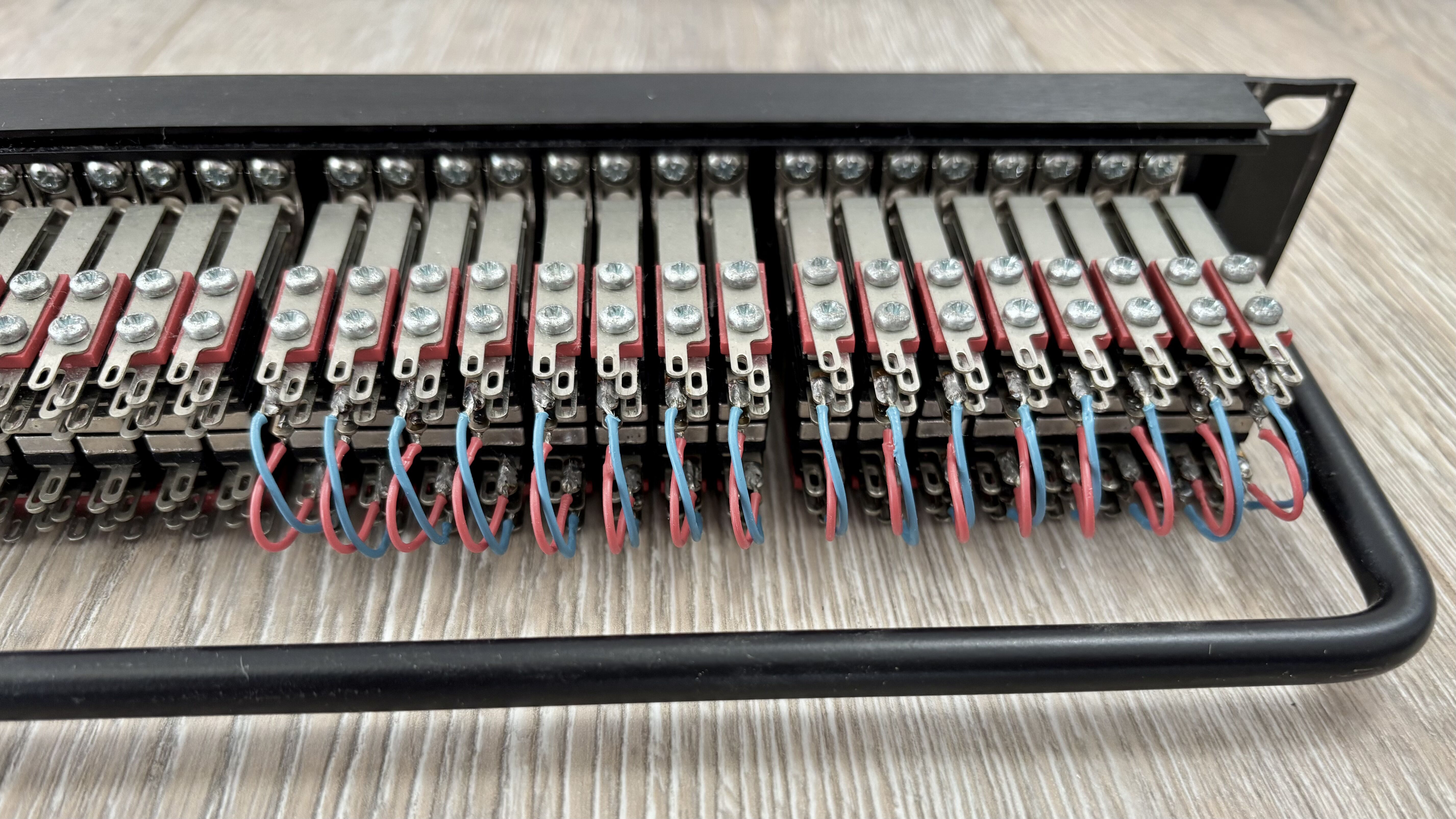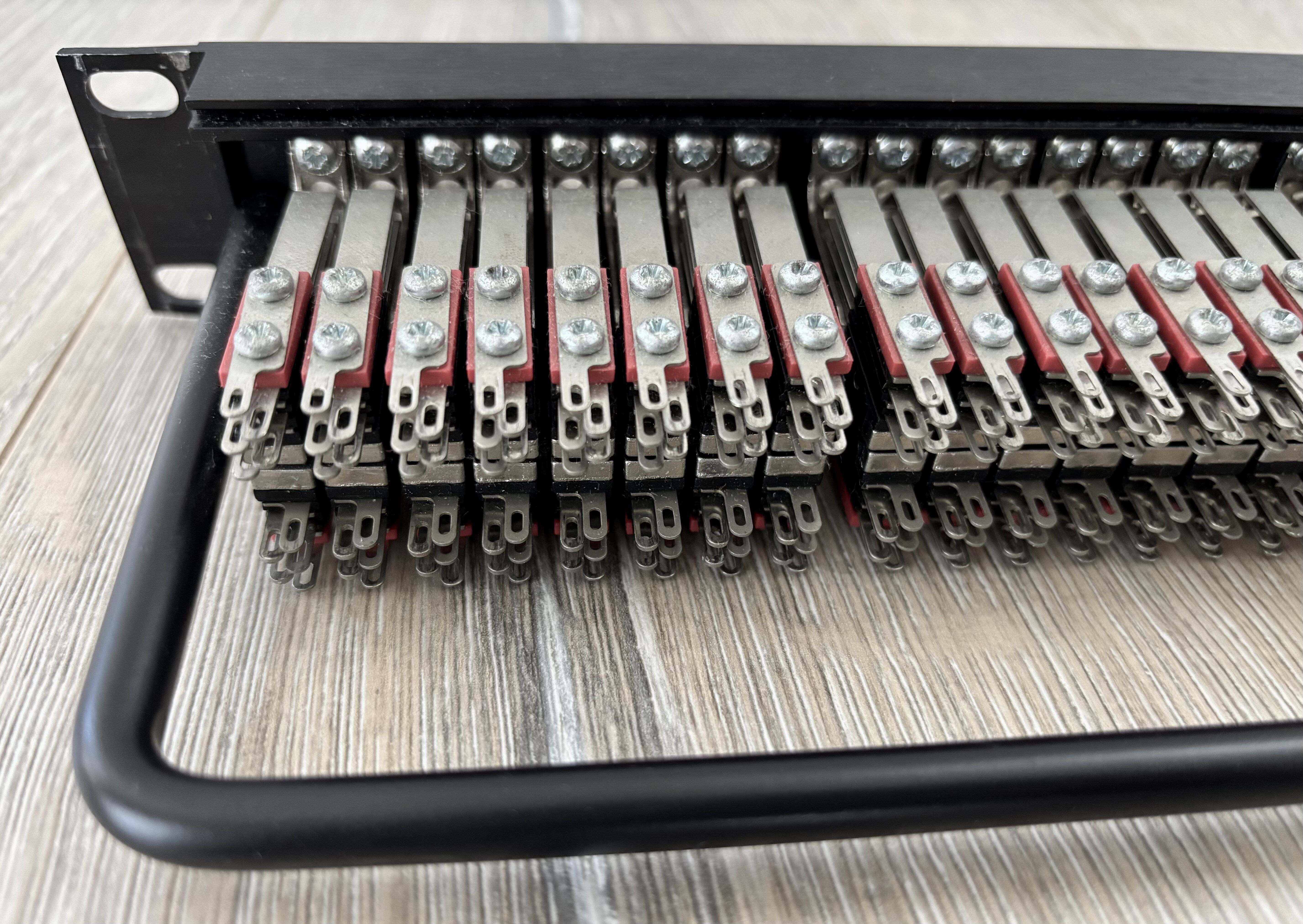 Patchbay comme neuf, les 16 premières entrées/sorties ont un lien soudé sur le point chaud et froid, je le laisse cela pourra servir au prochain acquéreur, dans le cas contraire à dessouder simplement, si besoin je peux le faire avant achat.