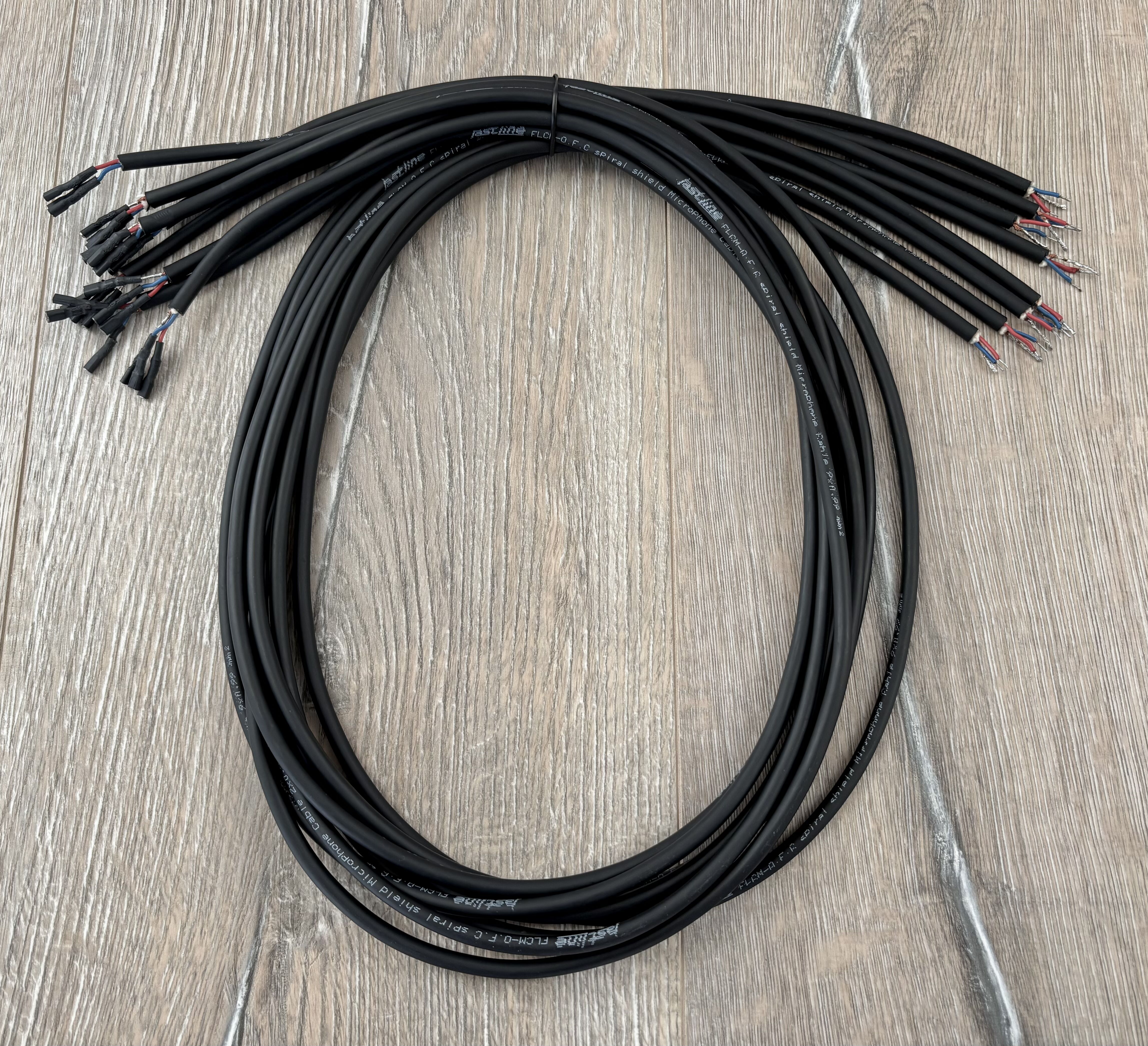 8 x Câbles FastLine - FLCM-OF-C - Spiral shield Microphone 2 x 0,22mm2 - Long. 1,20m équipé des cosses de connexion au patchbay