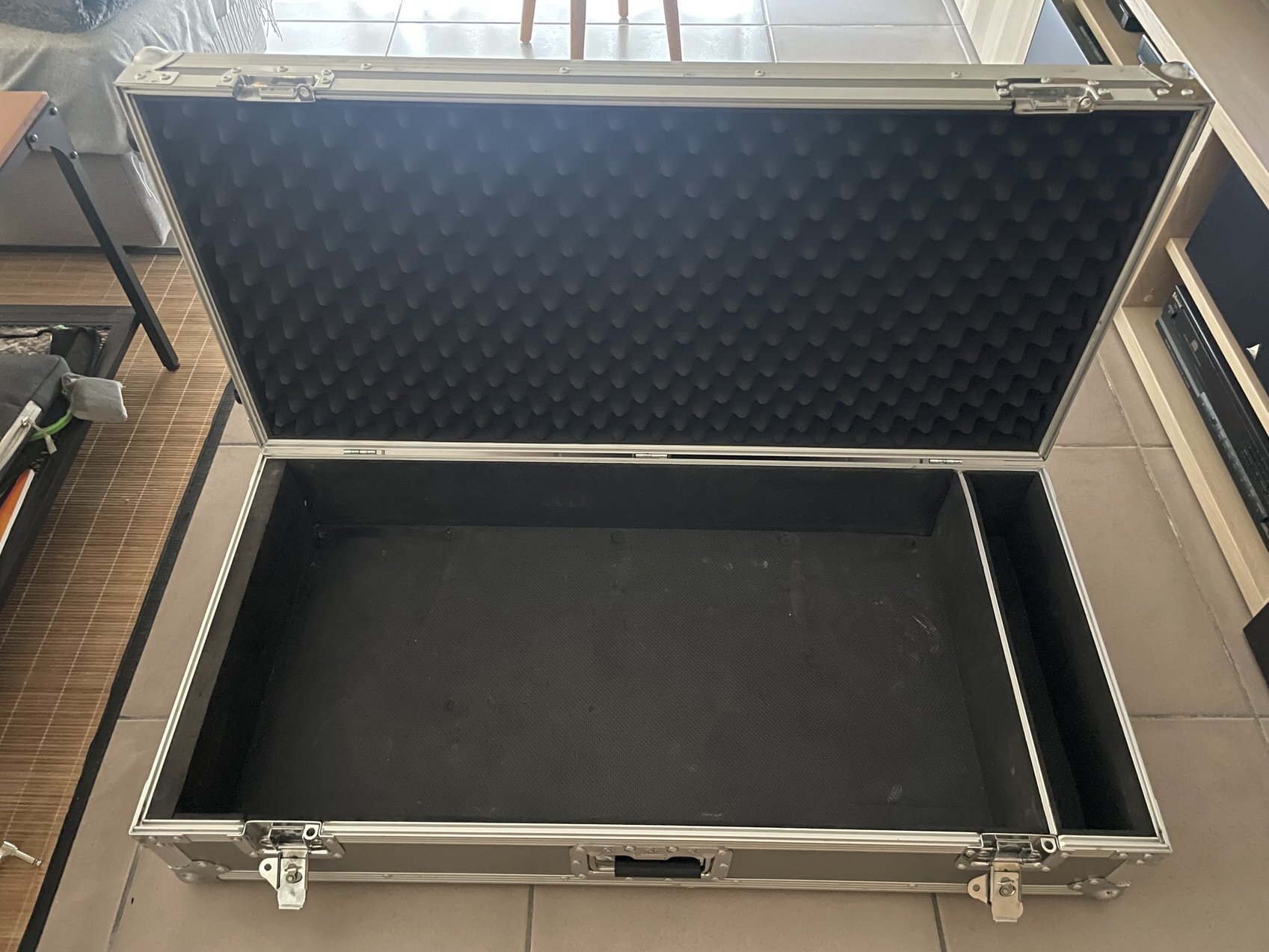 Très spacieux et pratique, vendu avec son flight case rigide pro. Il y une découpe pour les blocs de patch de rockboard.