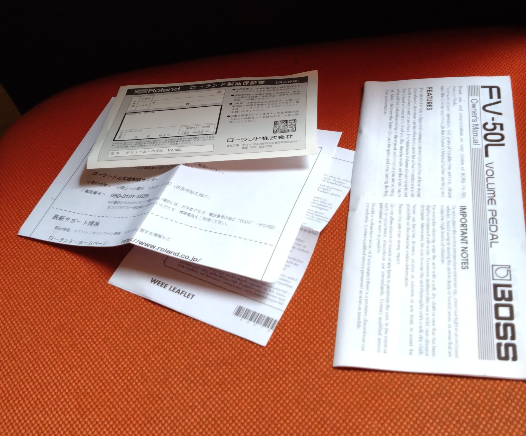 Pédale de volume BOSS FV-50L.Très peu utilisée (quelques répétitions, en sortie de claviers).