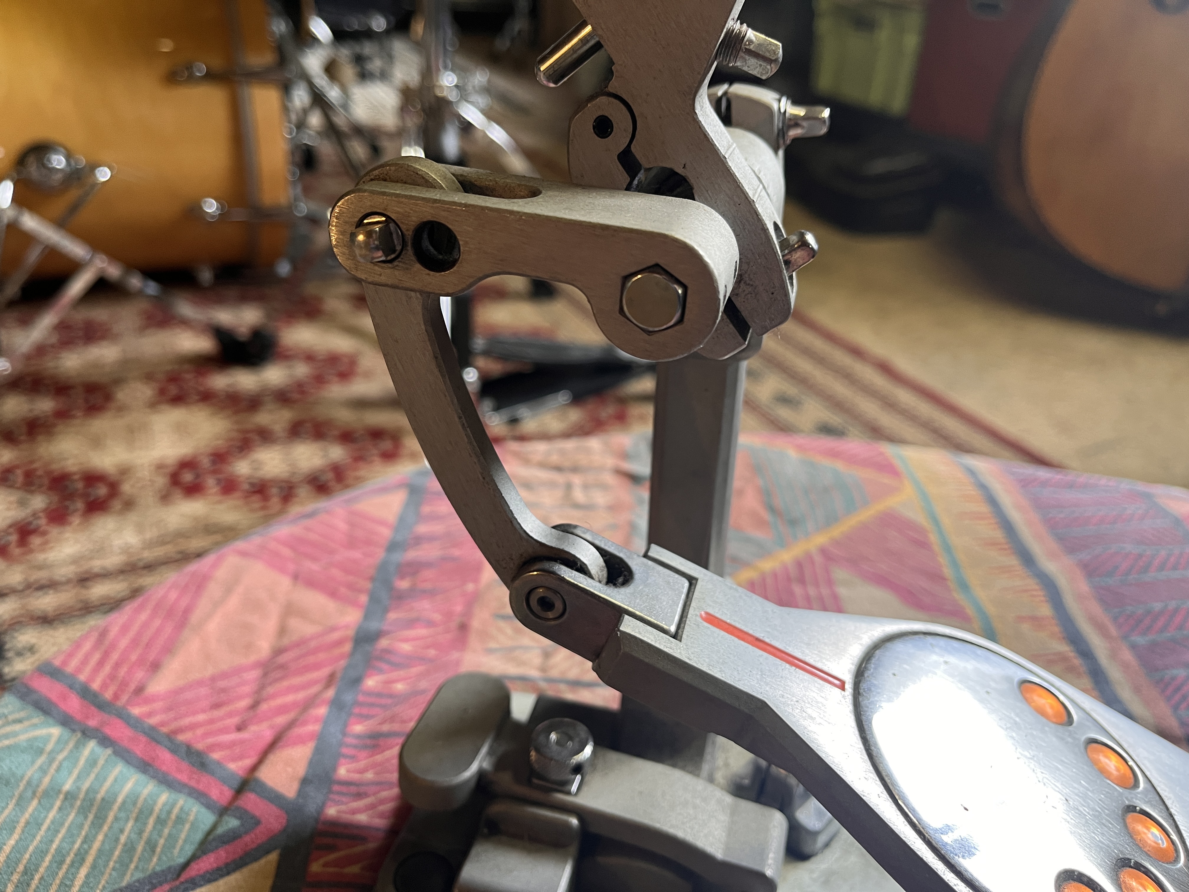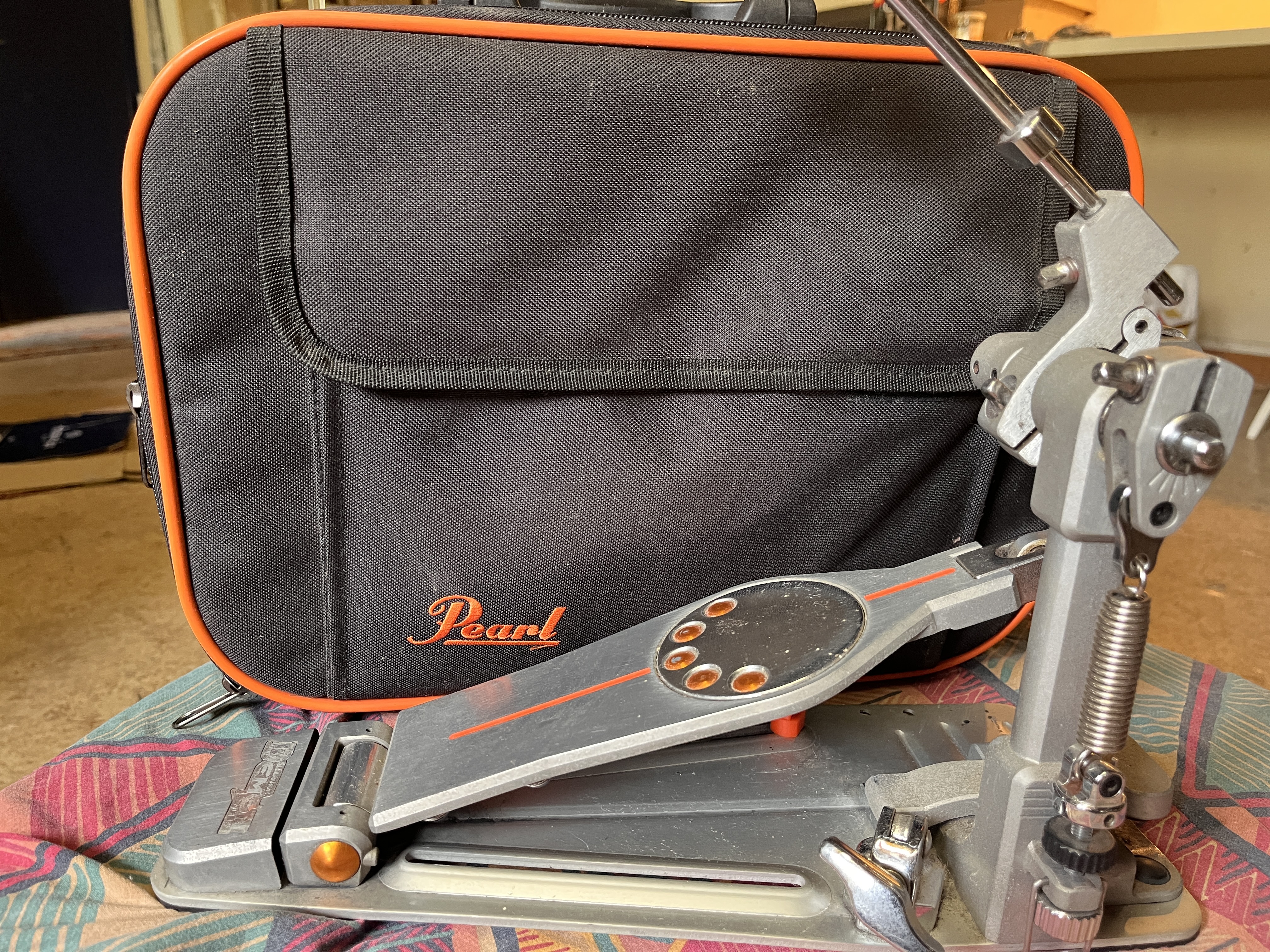 Pédale de grosse caisse Pearl Demon drive.Très bon état. La batte est fatiguée, la pédale fonctionne parfaitement.