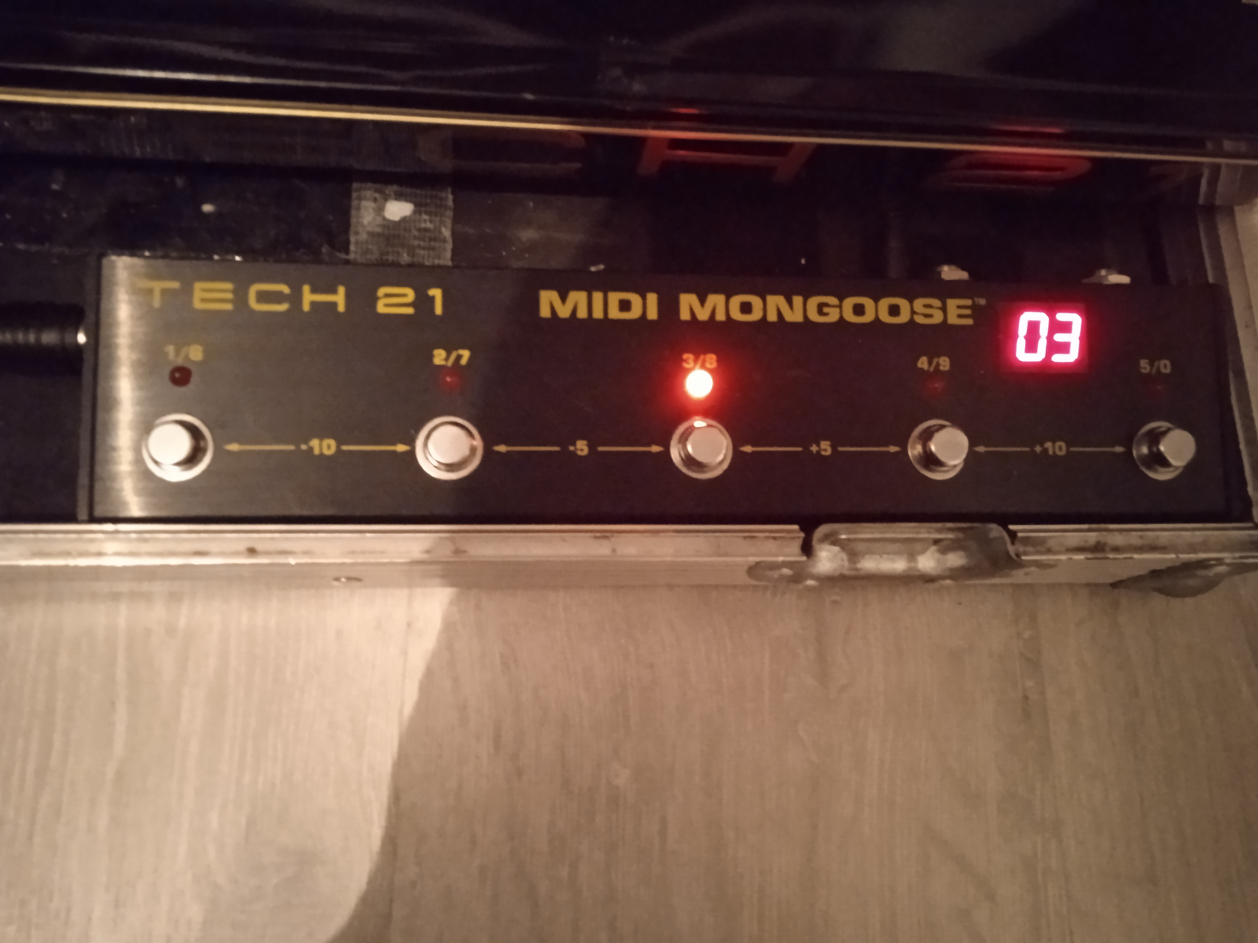 The MIDI Mongoose is the next generation of its predecessor, the MIDI Moose. It has a significantly smaller footprint and additional capabilities. There are 2 independent inputs for continuous controllers to facilitate use with your other MIDI equipment, as well as a 7-pin phantom power jack. With just 5 footswitches, you can change groupings of preset programs by five or ten at a clip. You can also access Special Page functions to set MIDI channel numbers and to set continuous controller channel numbers and calibration.