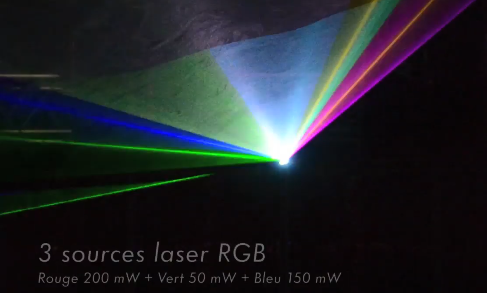 . Laser puissant (200 mW rouge, 50 mW vert, 150 mW bleu)
