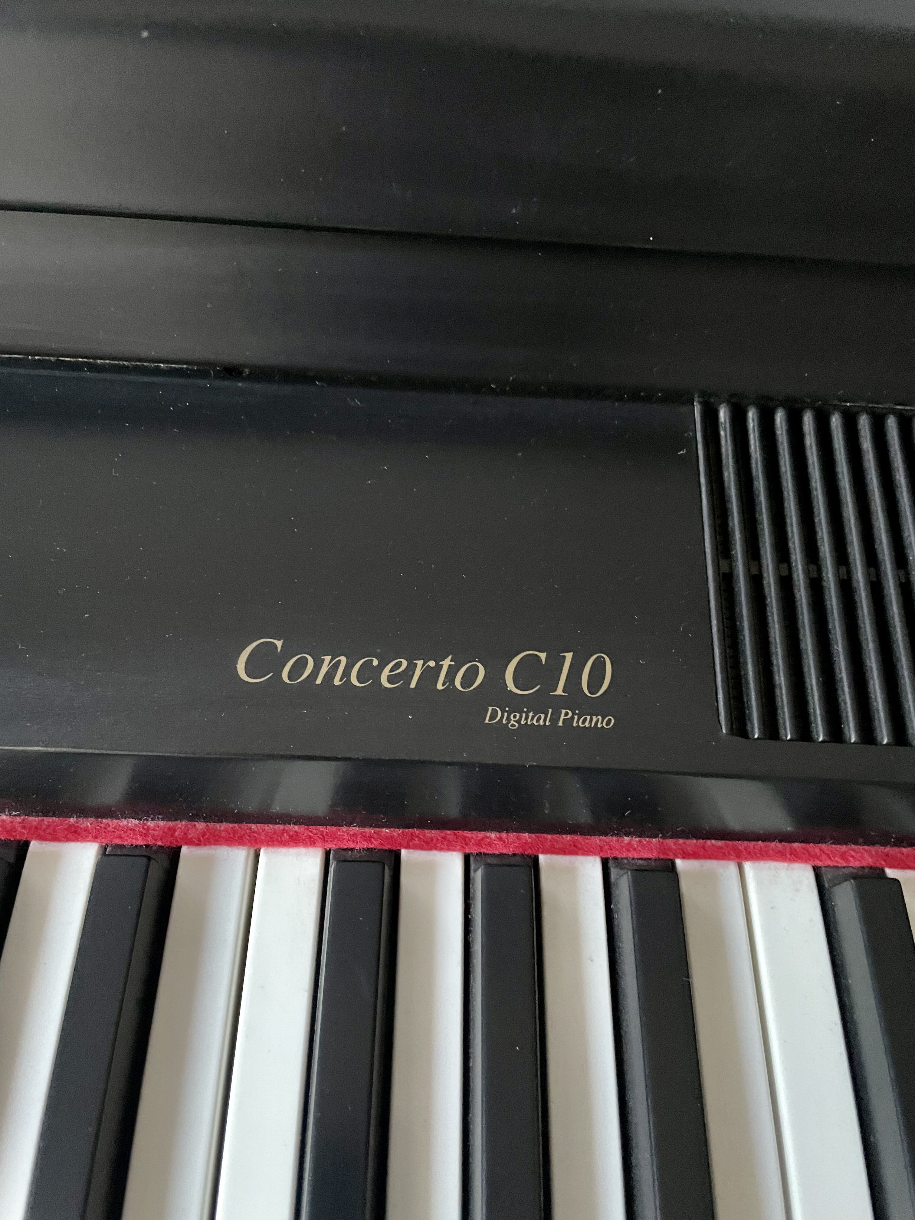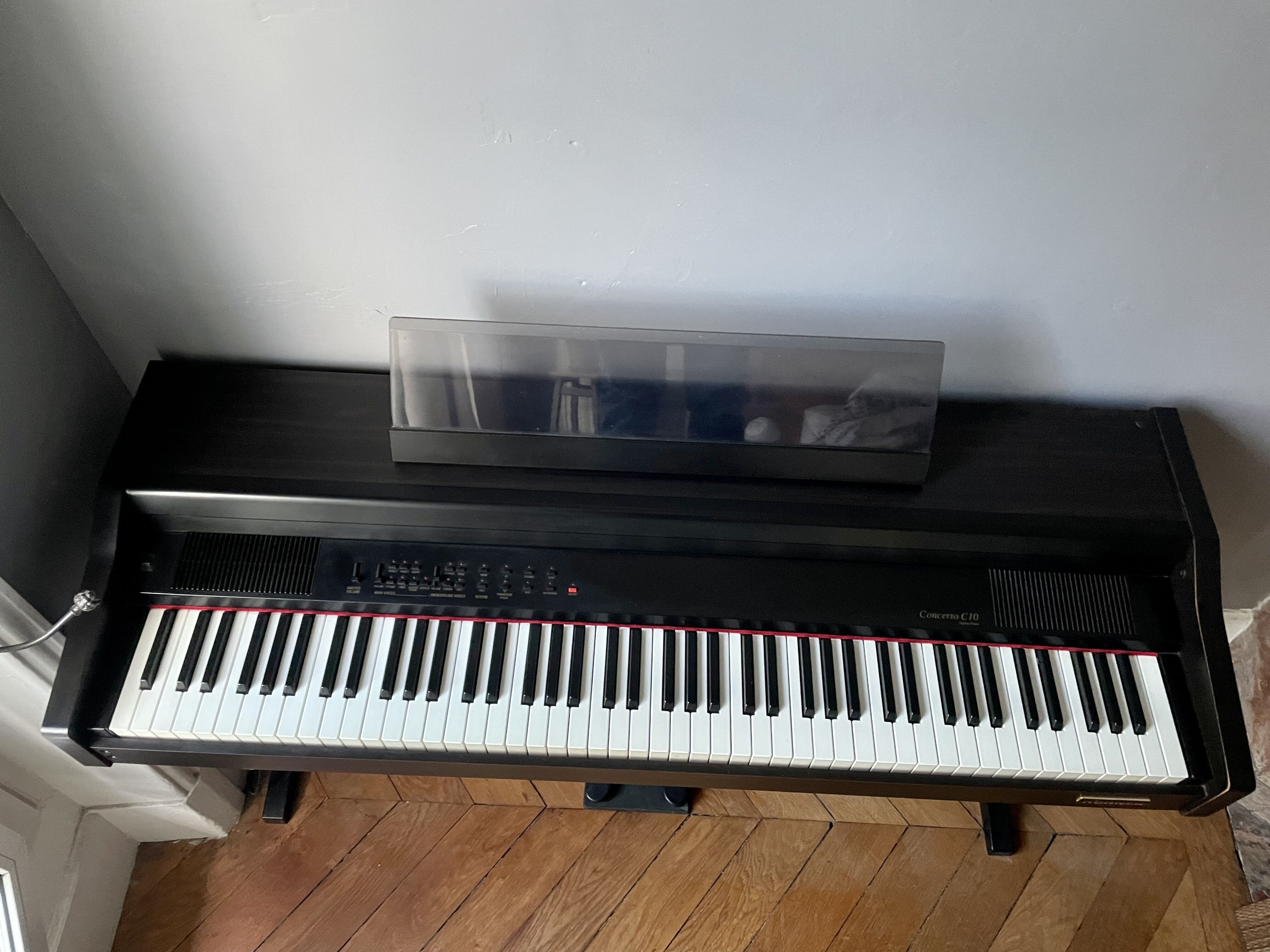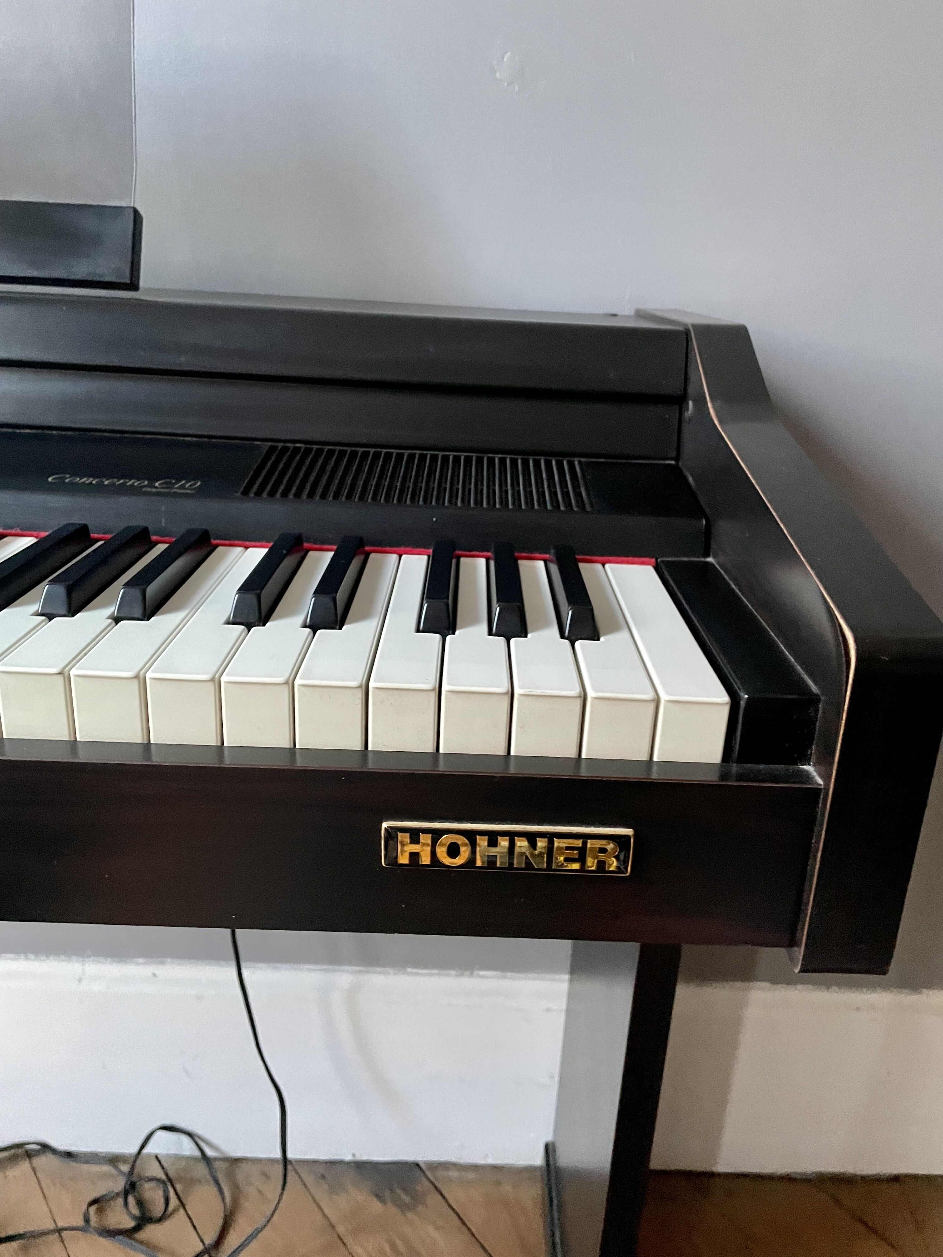 Bonjour, je vends mon piano électrique avec un vrai toucher piano acheté dans les 90s. Il s’agit du modèle Concerto 10 de chez Hohner. Il est vendu avec le siège et la pédale de sustain. Il y a 2 prises jacks pour pouvoir jouer au casque ou brancher des appareils midi.Il a quelques égratignures mais fonctionne parfaitement. Le siège a été recollé mais est parfaitement stable.