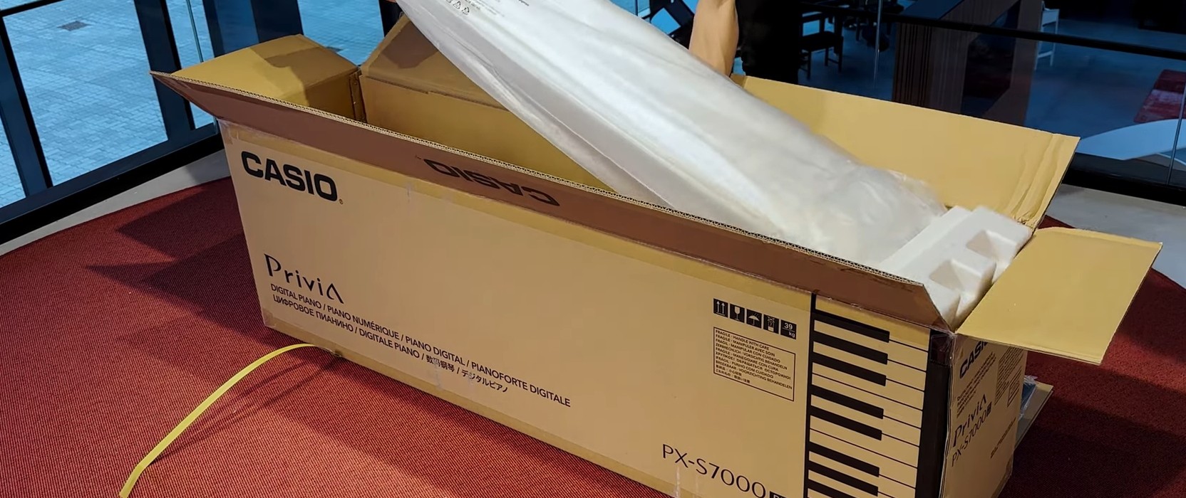 Clavier testé seulement, le meuble et le pédalier sont encore dans le carton d’origine non déballé.