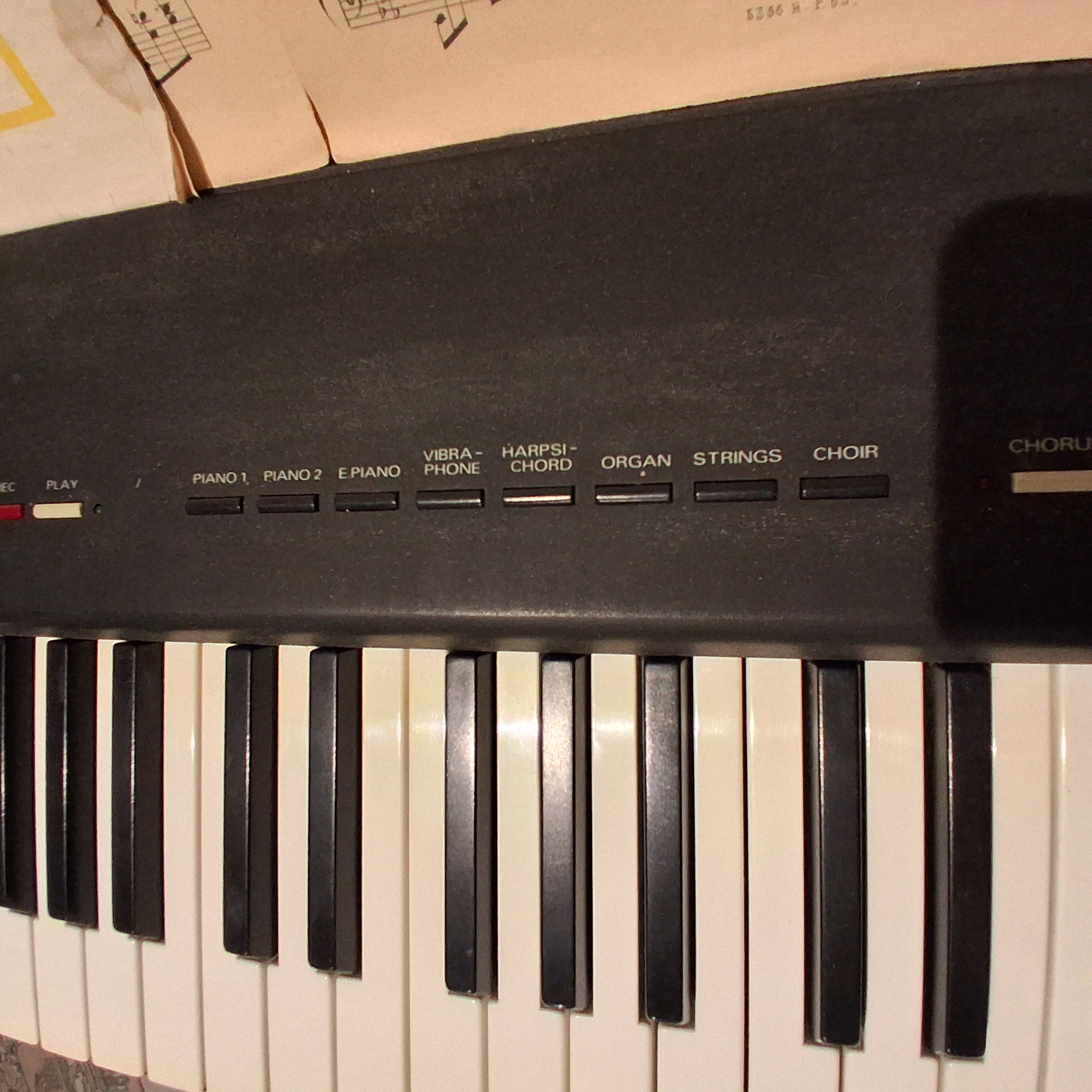 8 sons : 2 pianos, piano électrique (on est loin d'un DX7), clavecin, orgue, vibraphone, chœur et cordes (idéales pour des nappes).