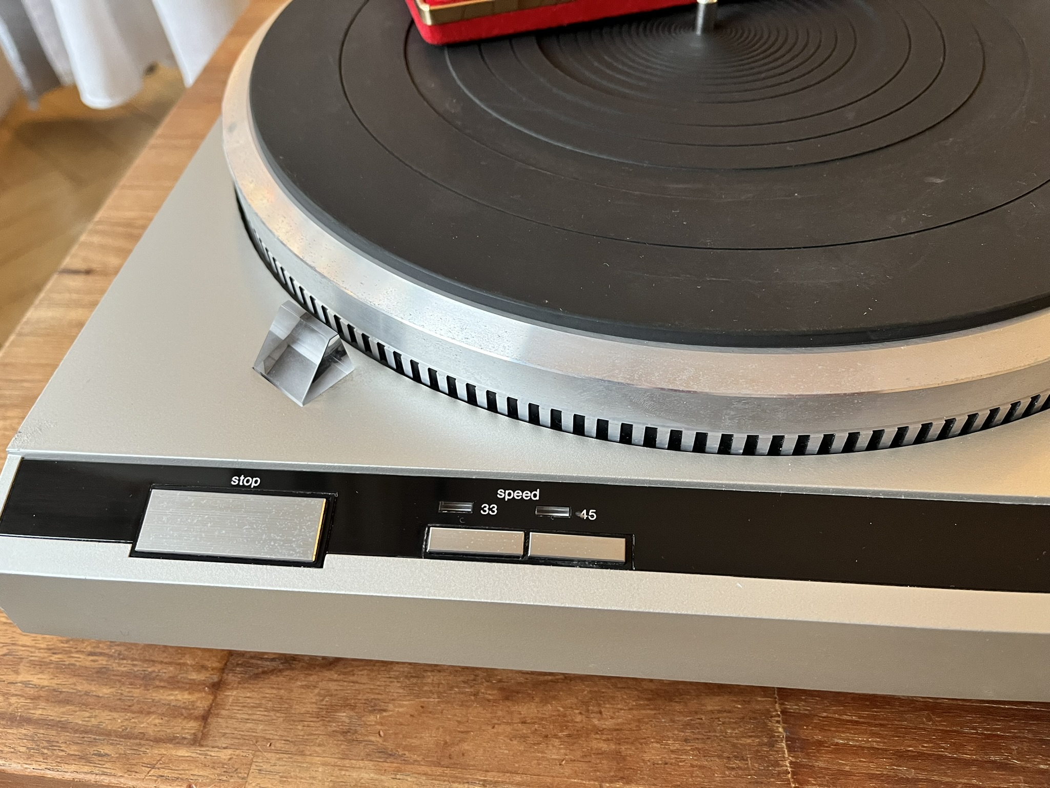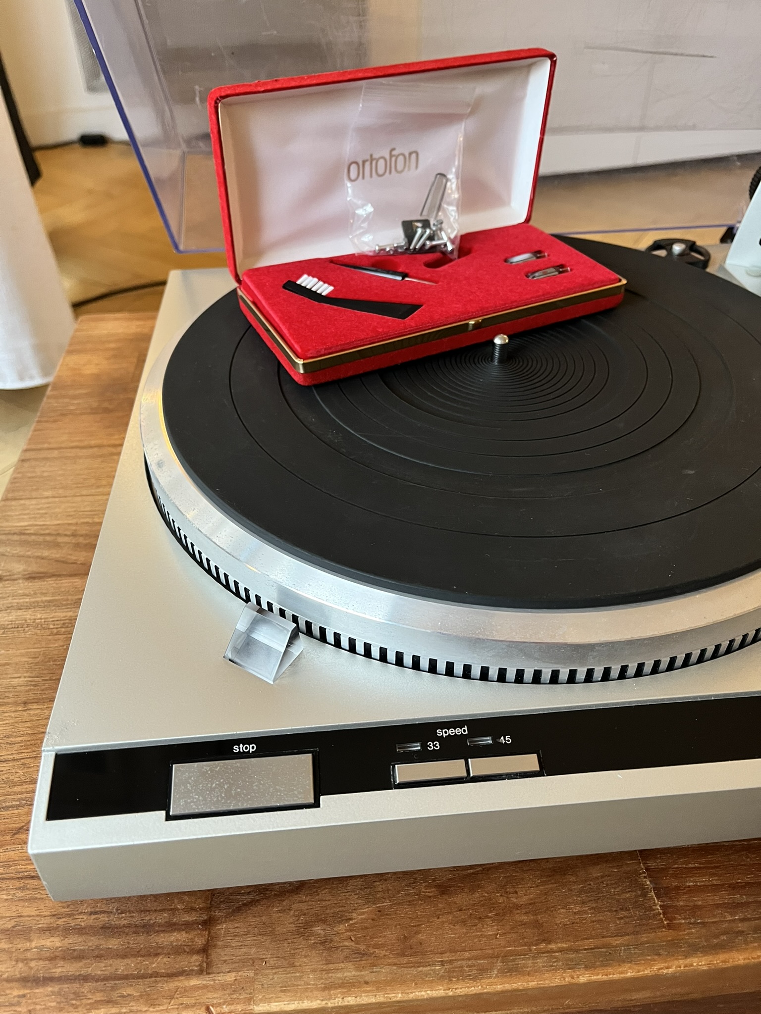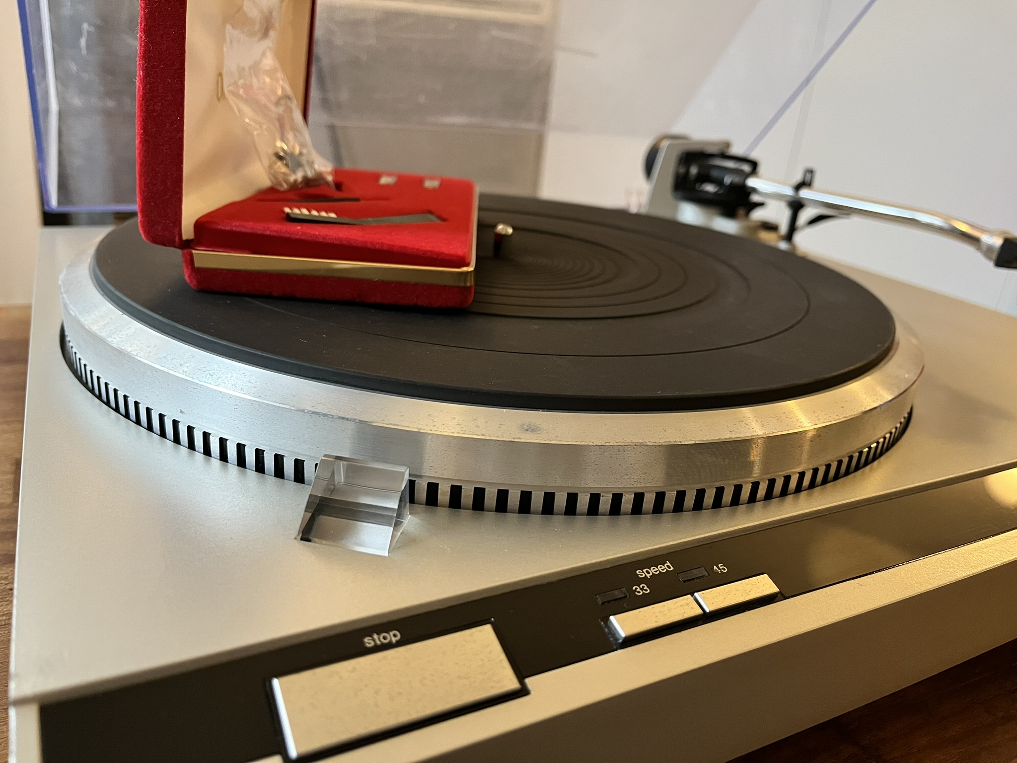 Elle fonctionne correctement, le centreur de 45 tours n'est pas d'origine.