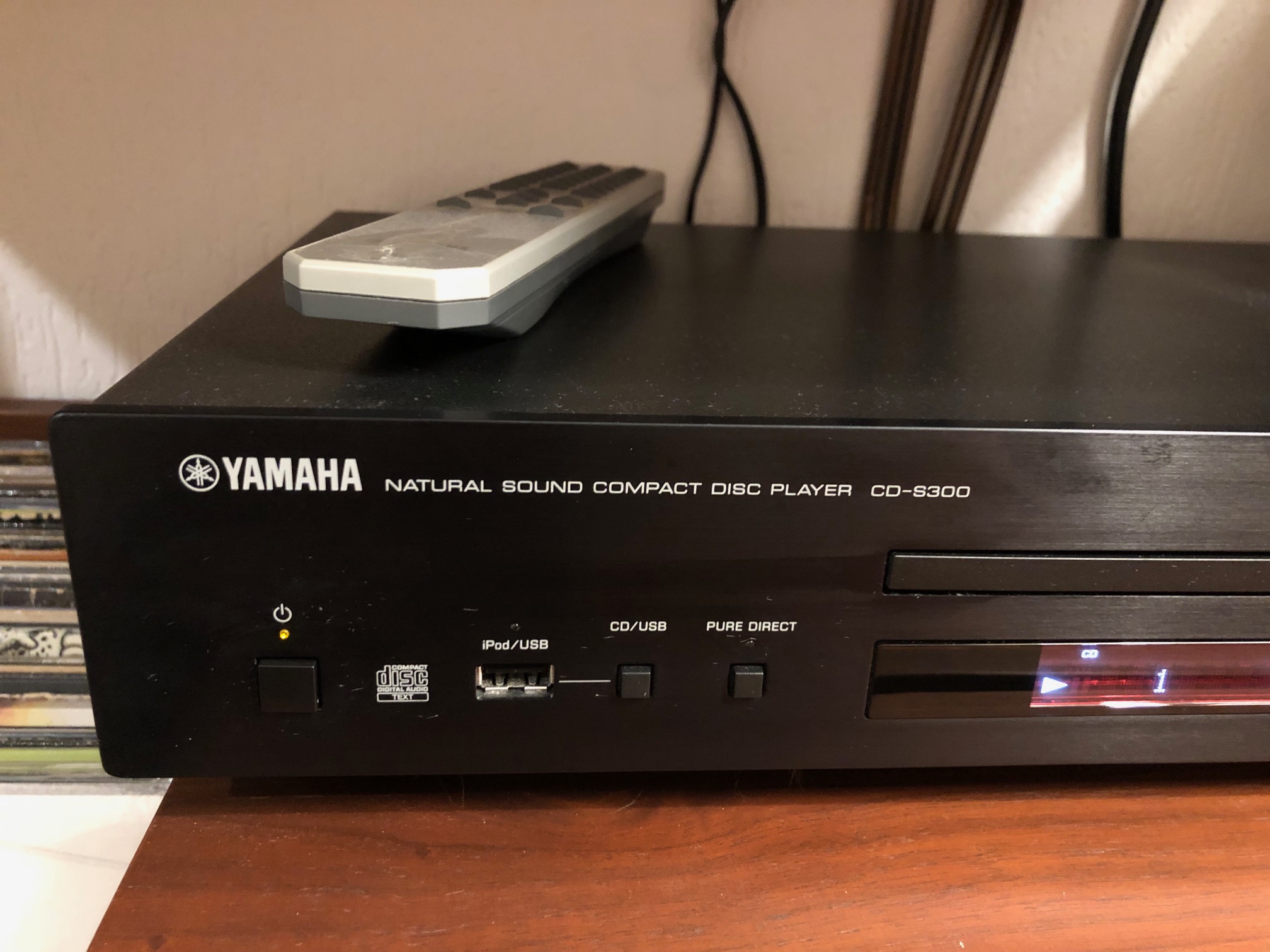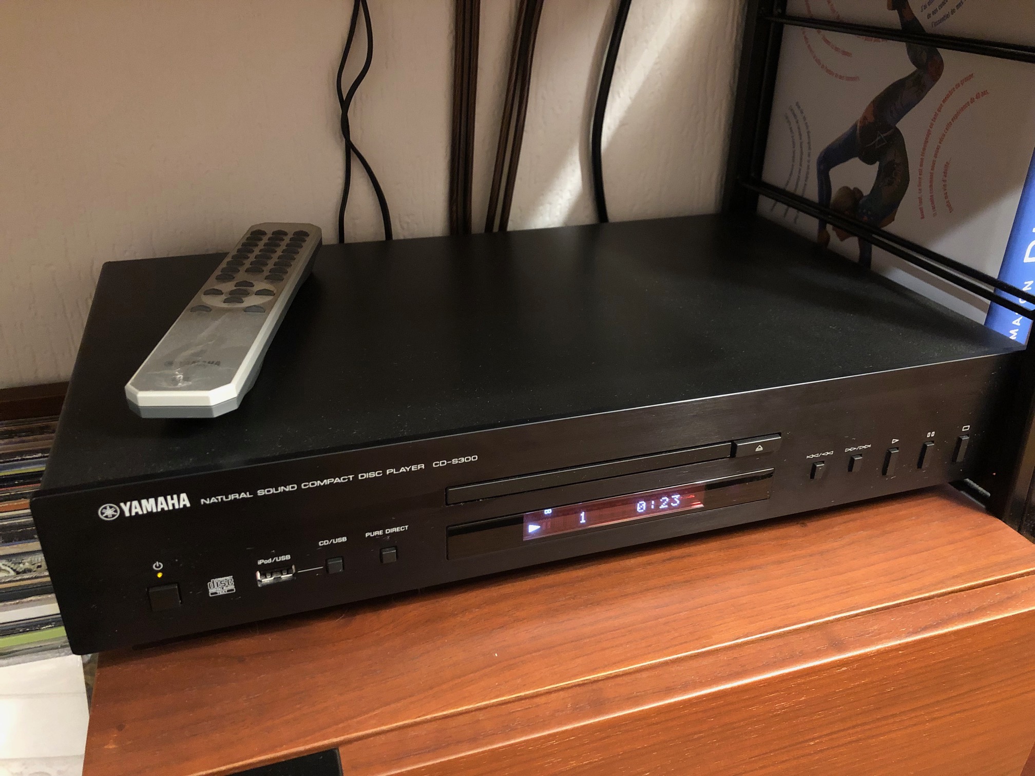 Lecteur CD Yamaha CD-S300 noir, acheté neuf en 2015, excellent état, utilisé et manipulé avec grand soin. Avec télécommande, mode d'emploi et double carton/protections d'origine. Super lecteur, qualité de lecture irréprochable. Prise USB en façade.Pour cause d'arrivée d'un heureux événement et donc besoin de place :-), je vends mon installation hi-fi audiophile pour acheter plus compact (voir mes autres annonces pour l'ampli et les enceintes colonnes ; je ne garde que la platine vinyle).