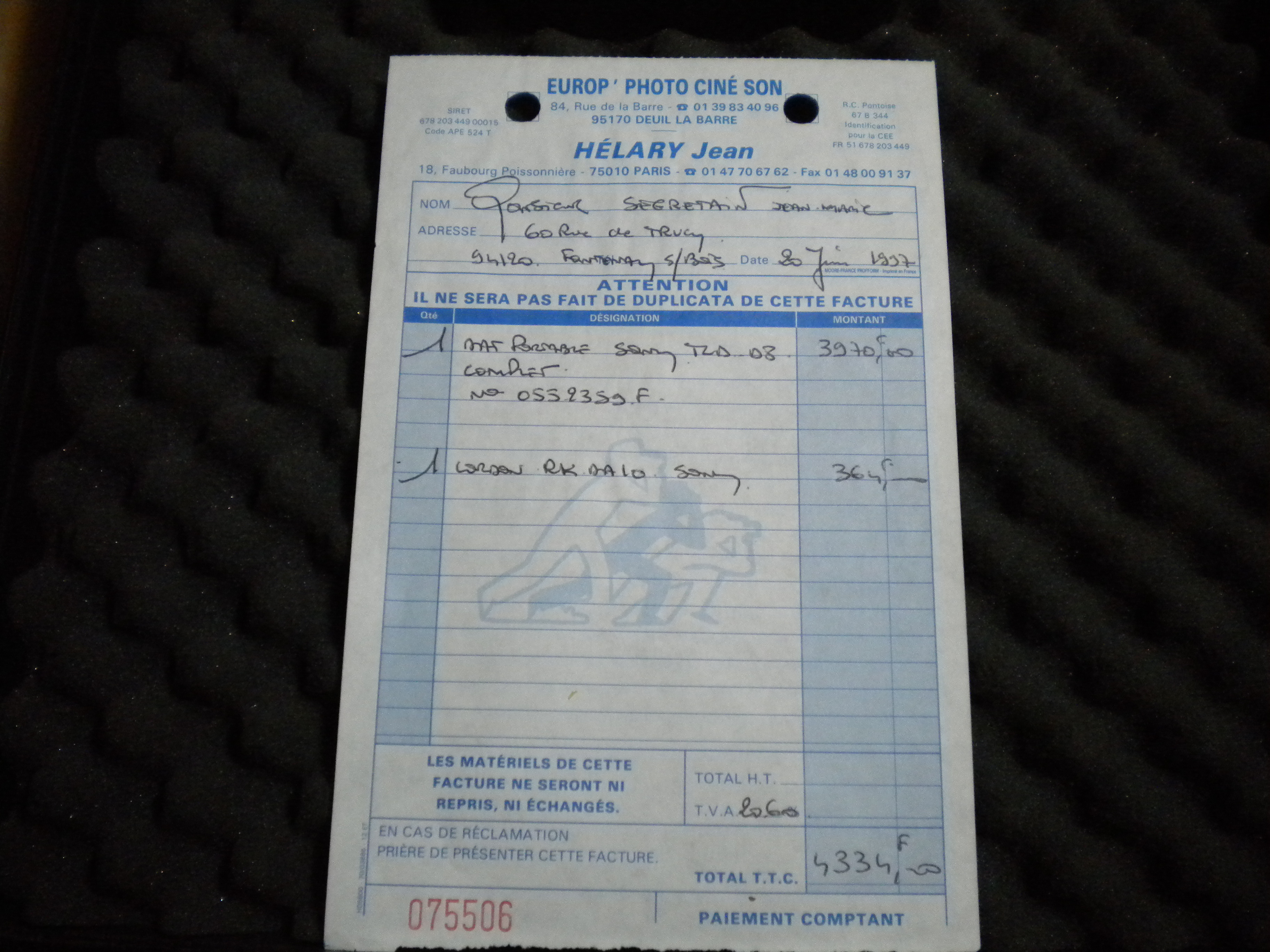 Avec facture. DAT acheté 4334 F (660,71 euros) en juin 1997.