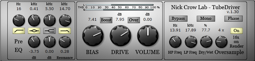 La mise à jour v1.3 de TubeDriver apporte un contrôle Dry/Wet global et un indicateur de mesure du taux de distorsion harmonique (THD).