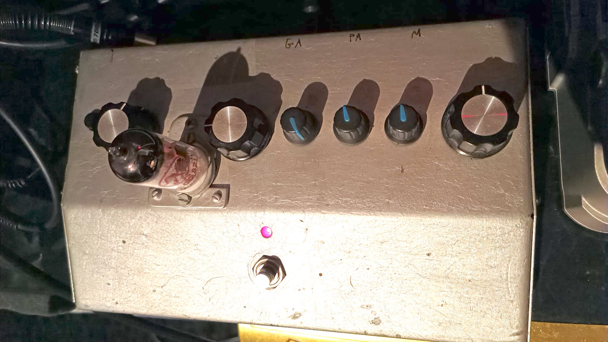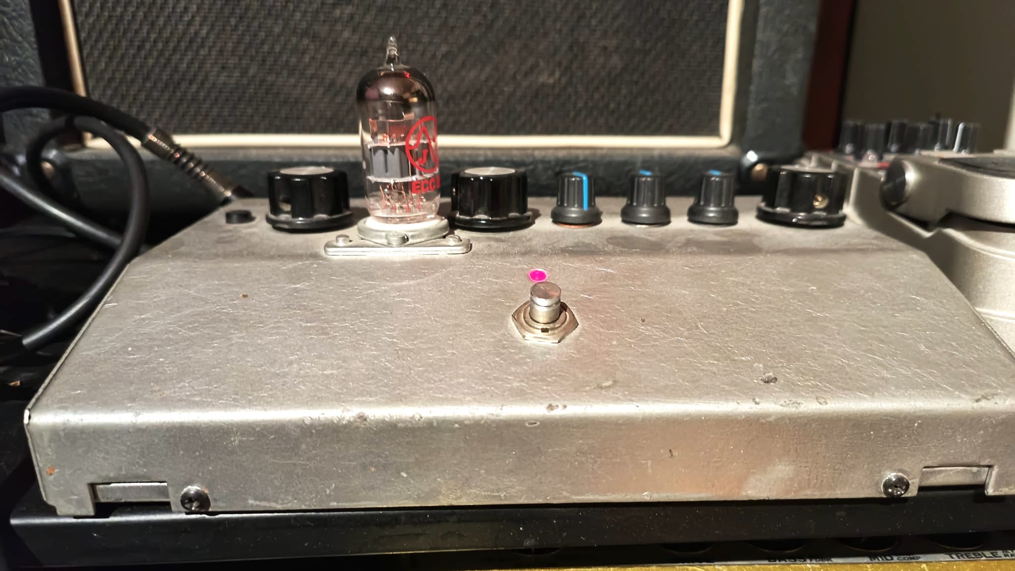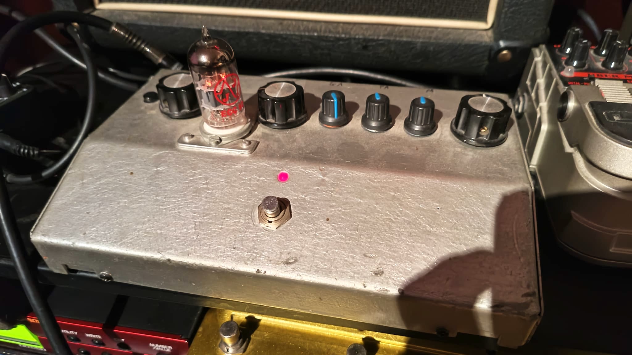 Préampli à lampe 4 canaux, format pedale, avec une sortie red box intégré+ sortie direct amp et ampli guitare (préamplifié).