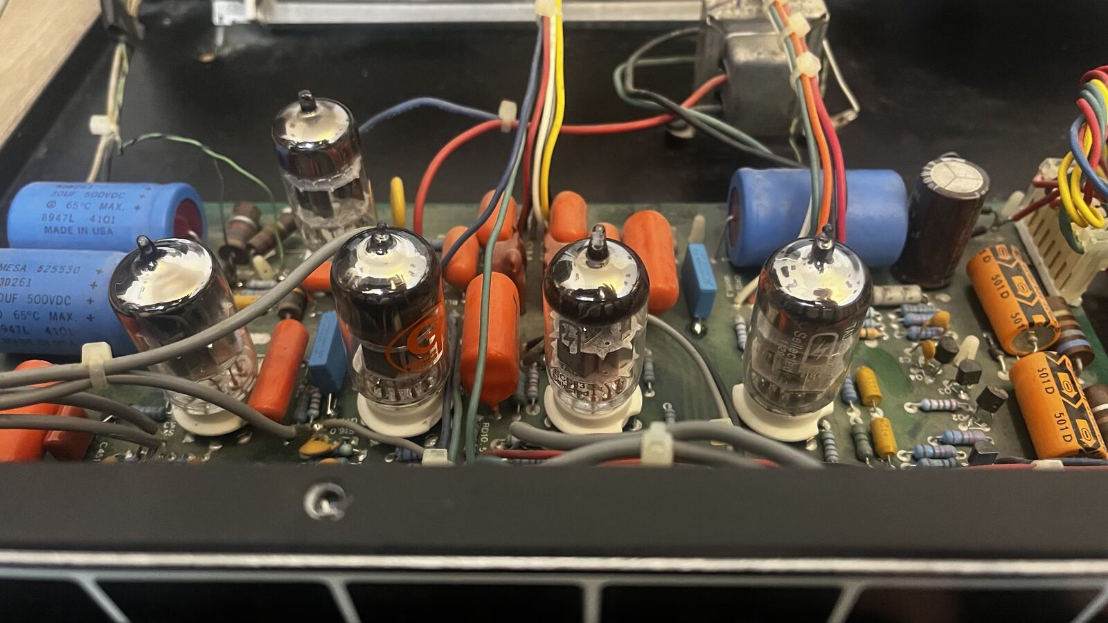 Groove Tubes en V1 et V2, Tube Amp Doctor (TAD) en V3 et V4. (Coût 150 € pour les quatre lampes)