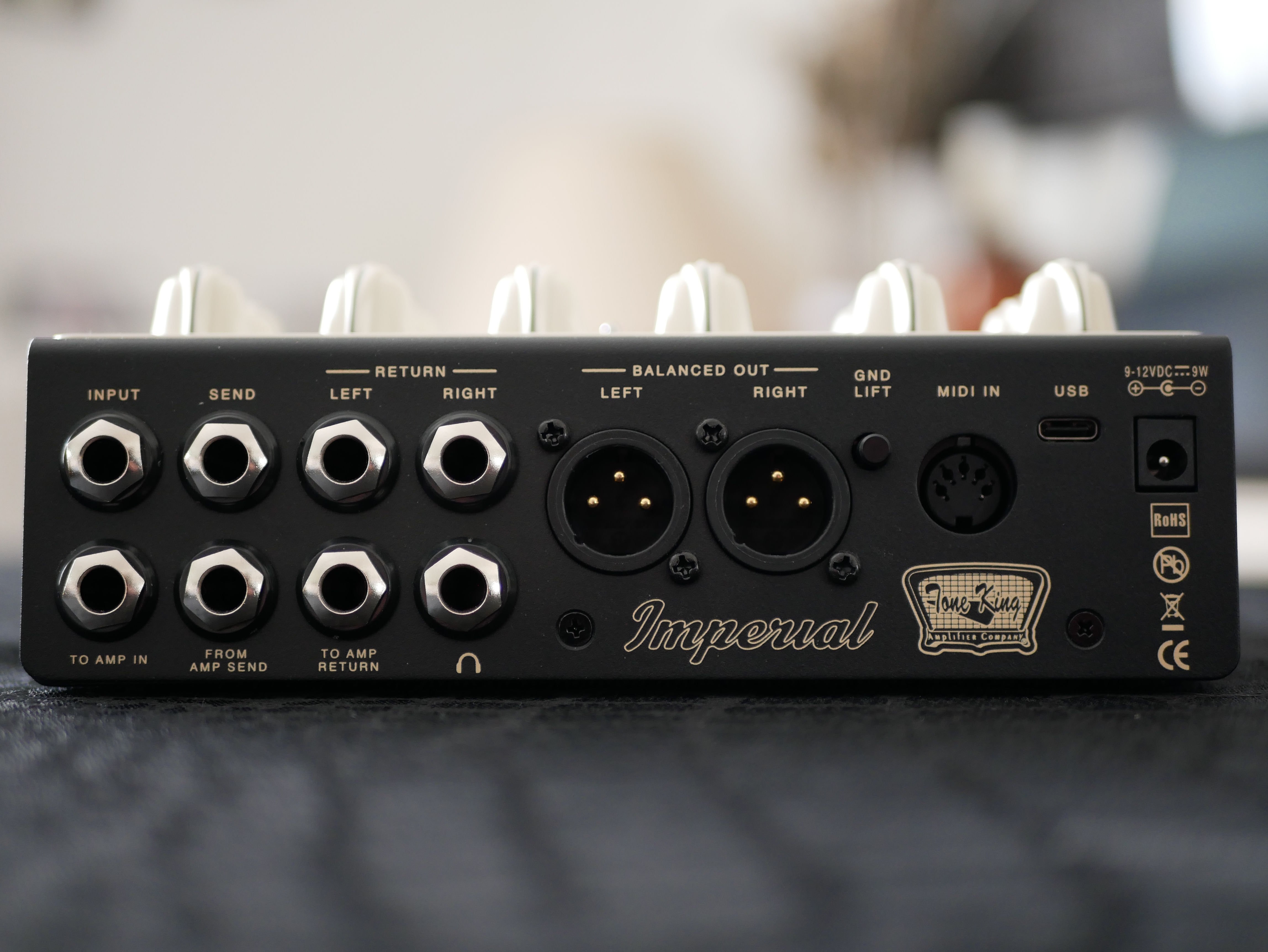 La pédale peut également s’intégrer directement dans le circuit d’un ampli guitare grâce à trois connexions dédiées : From Amp Send, To Amp Return et To Amp In, toutes au format jack 6,35 mm. On peut ainsi imaginer utiliser l’Imperial Preamp pour ajouter des canaux supplémentaires à un amplificateur.