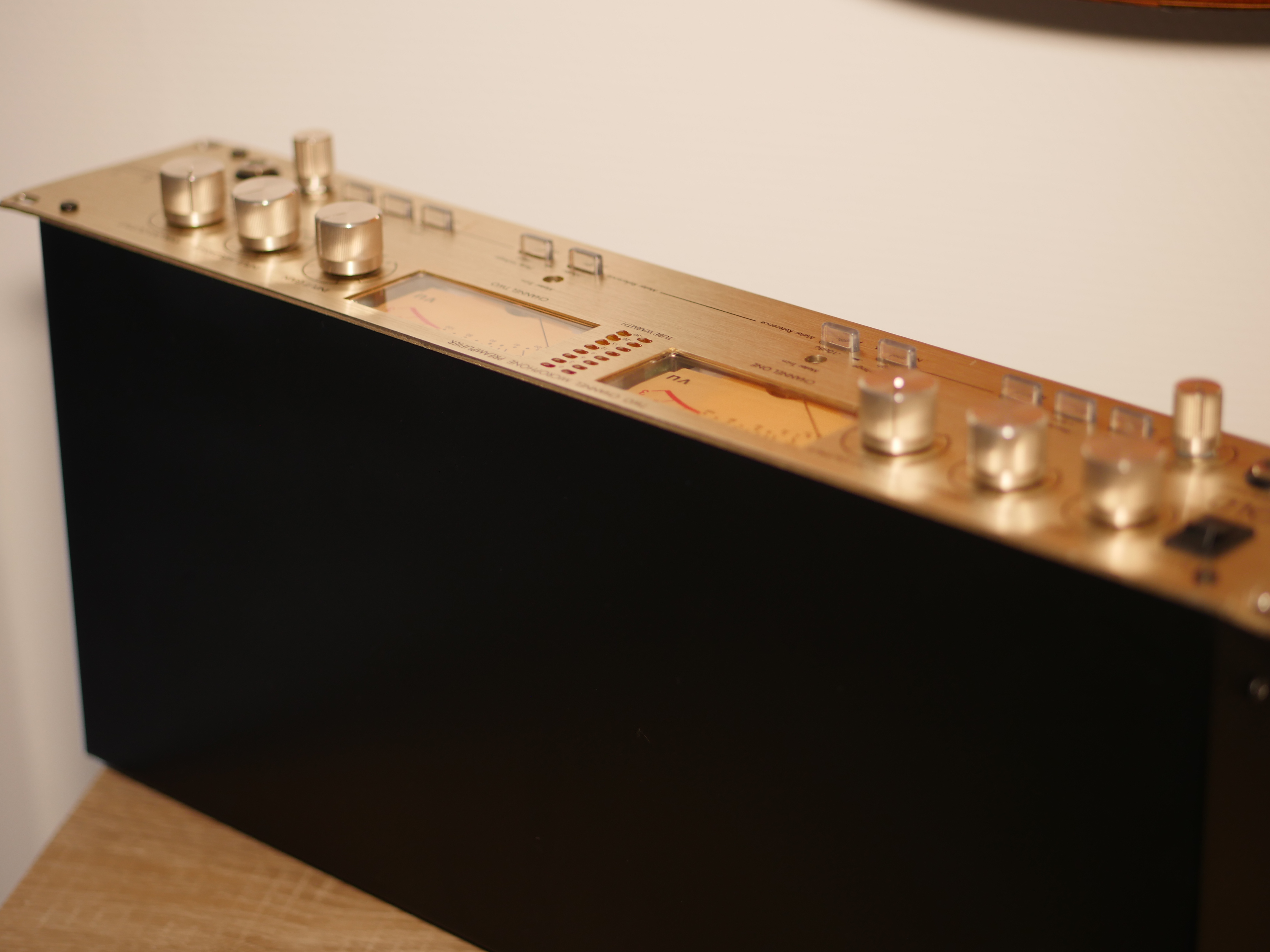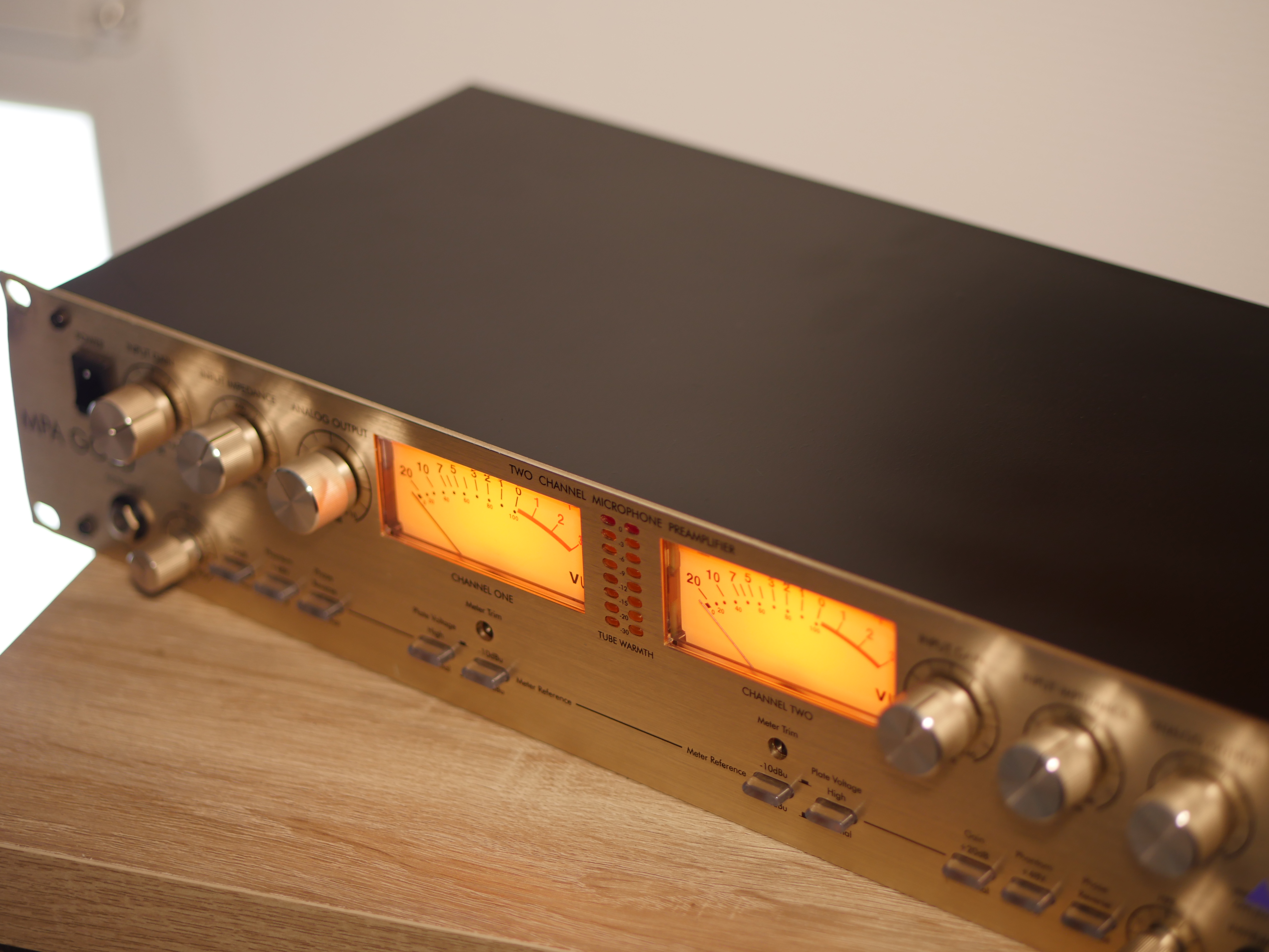Il y a tout ce peut rechercher sur 1 préamp: gain d'entrée,gain de sortie,alim phantom,phase,1 coupe-bas efficace (je ne m'y attendais pas!),Vu-mètre assez large (et plaisant) et jauge de chaleur des lampes.