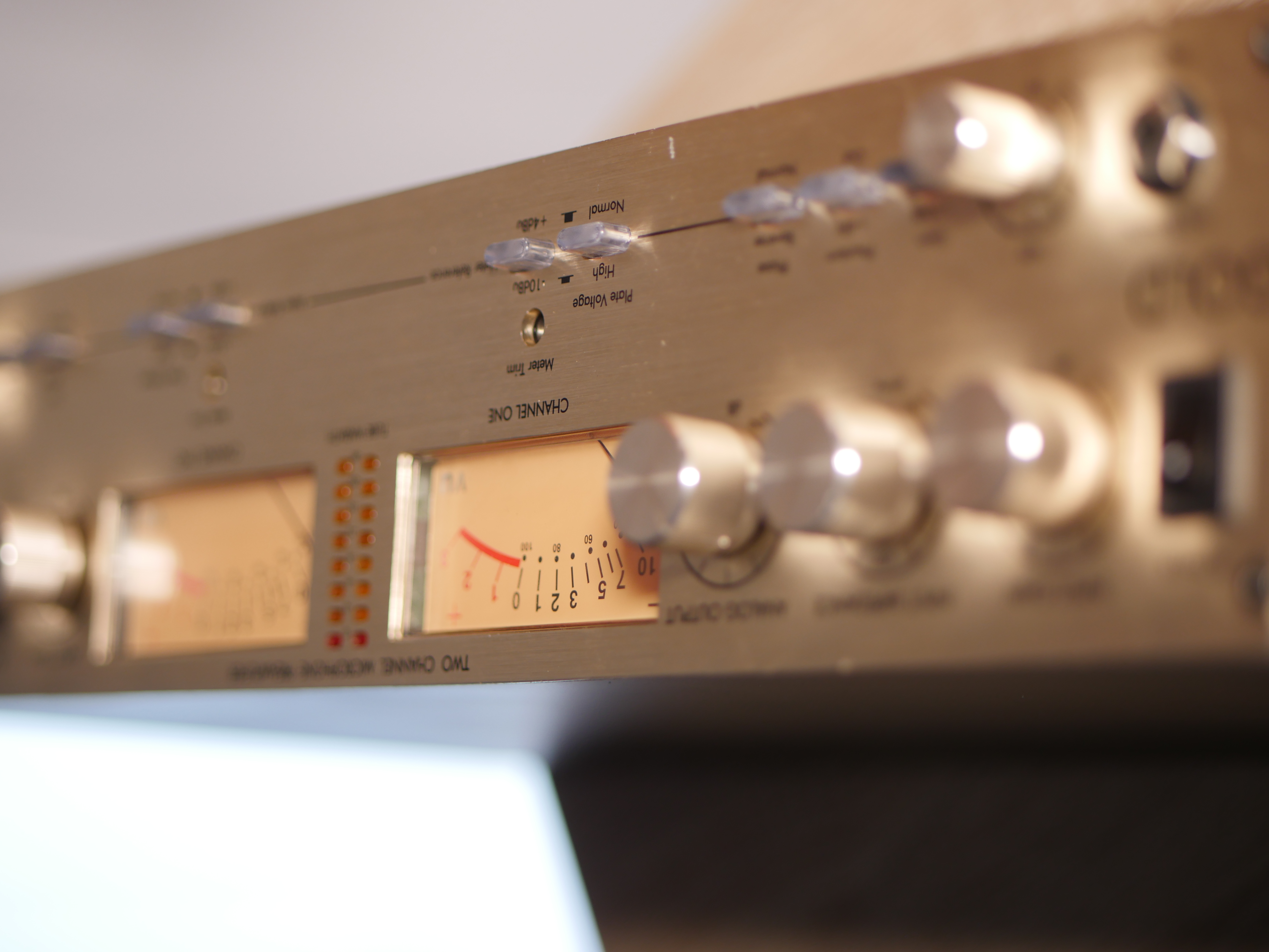 Préampli a lampes . 2 Cannaux, entrées banlanced ou ligne, vu metres très precis et impressionants.