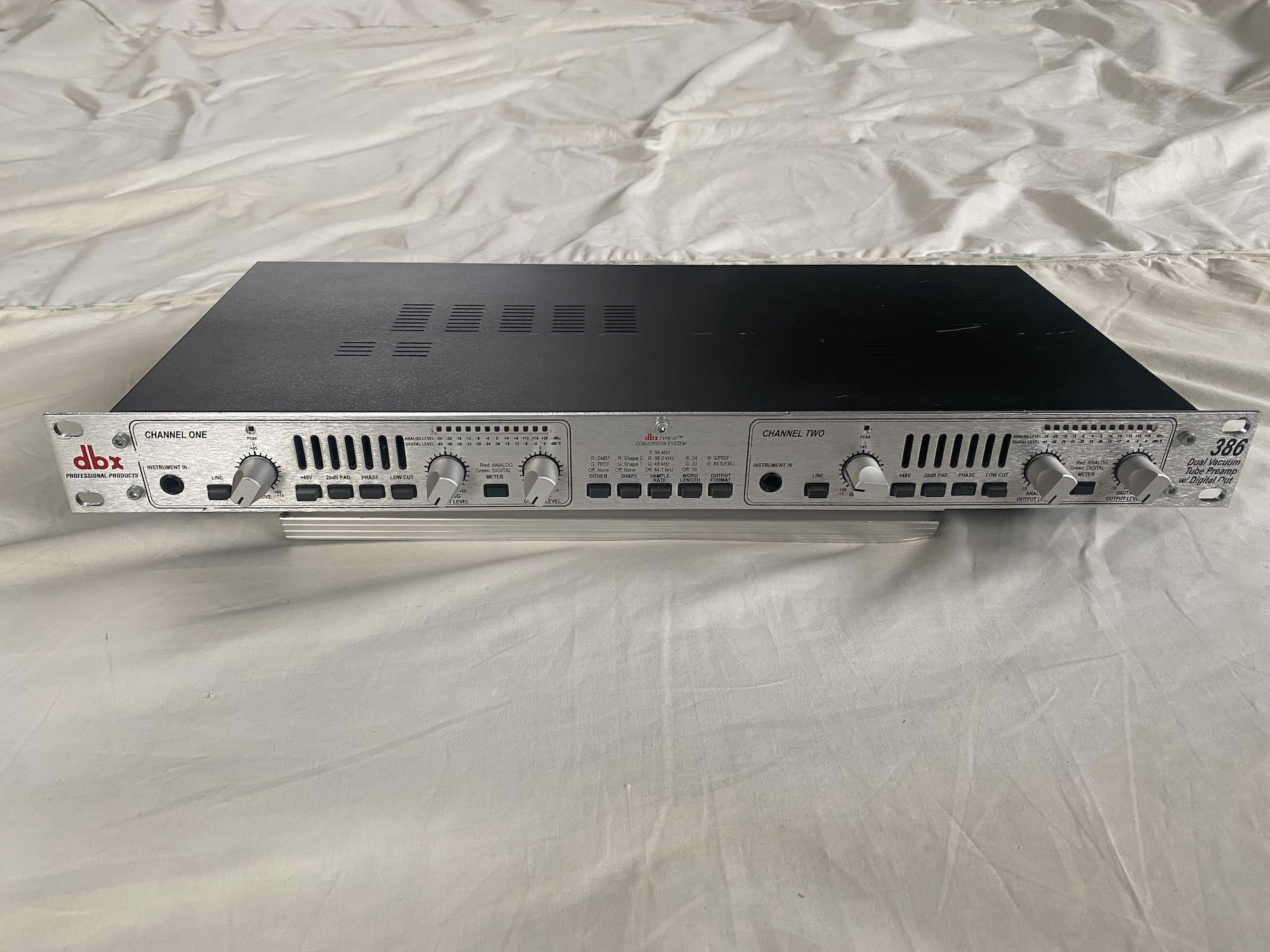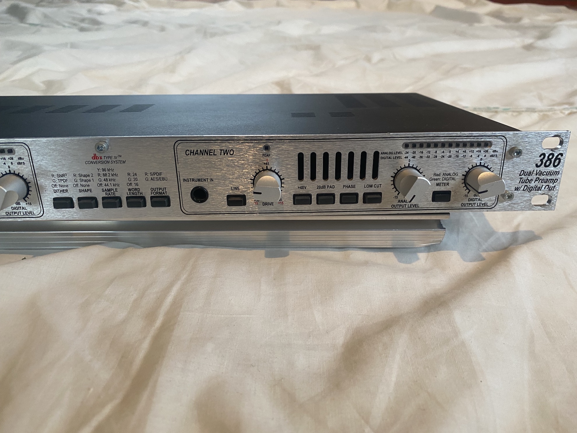 je fais de la place dans le studio, je vends donc ce DBX386, double préamplificateur à lampe avec sortie analogique et AES. Possibilité de livré avec une paire de cable AES/EBU longueur 1,5m