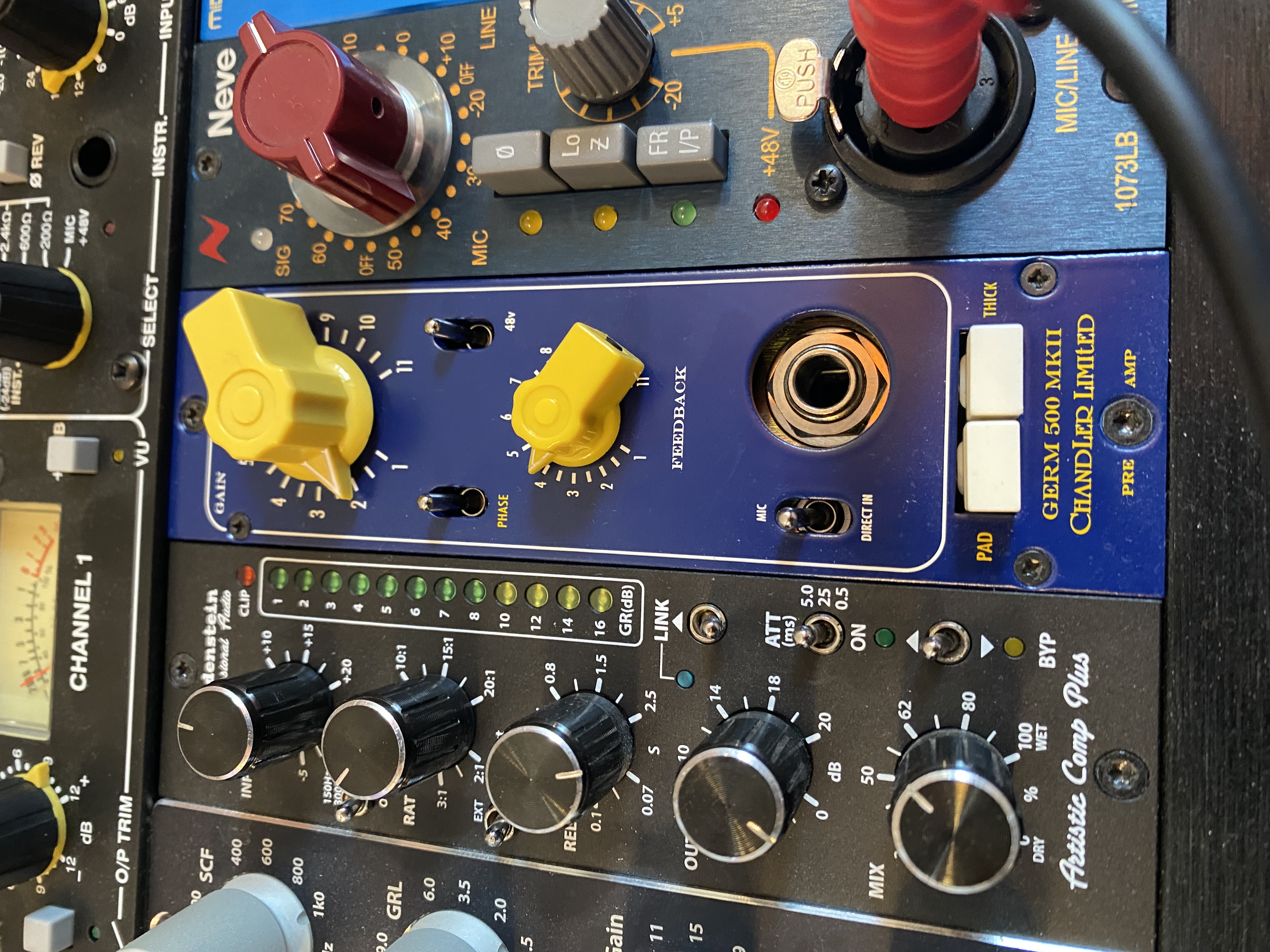 J ai lu sur Gearslutz que ce preampli n'est plus fabriquer suite à des problèmes de bruit parasite et en y repensant (car je n'ai plus ce preamp en ma possession) le feedback était peut être en cause, je ne l utilisais que très peu parce que je le trouvais la plupart du temp trop bruyant. Mais je peu me tromper, c'est un raisonnement à posteriori.