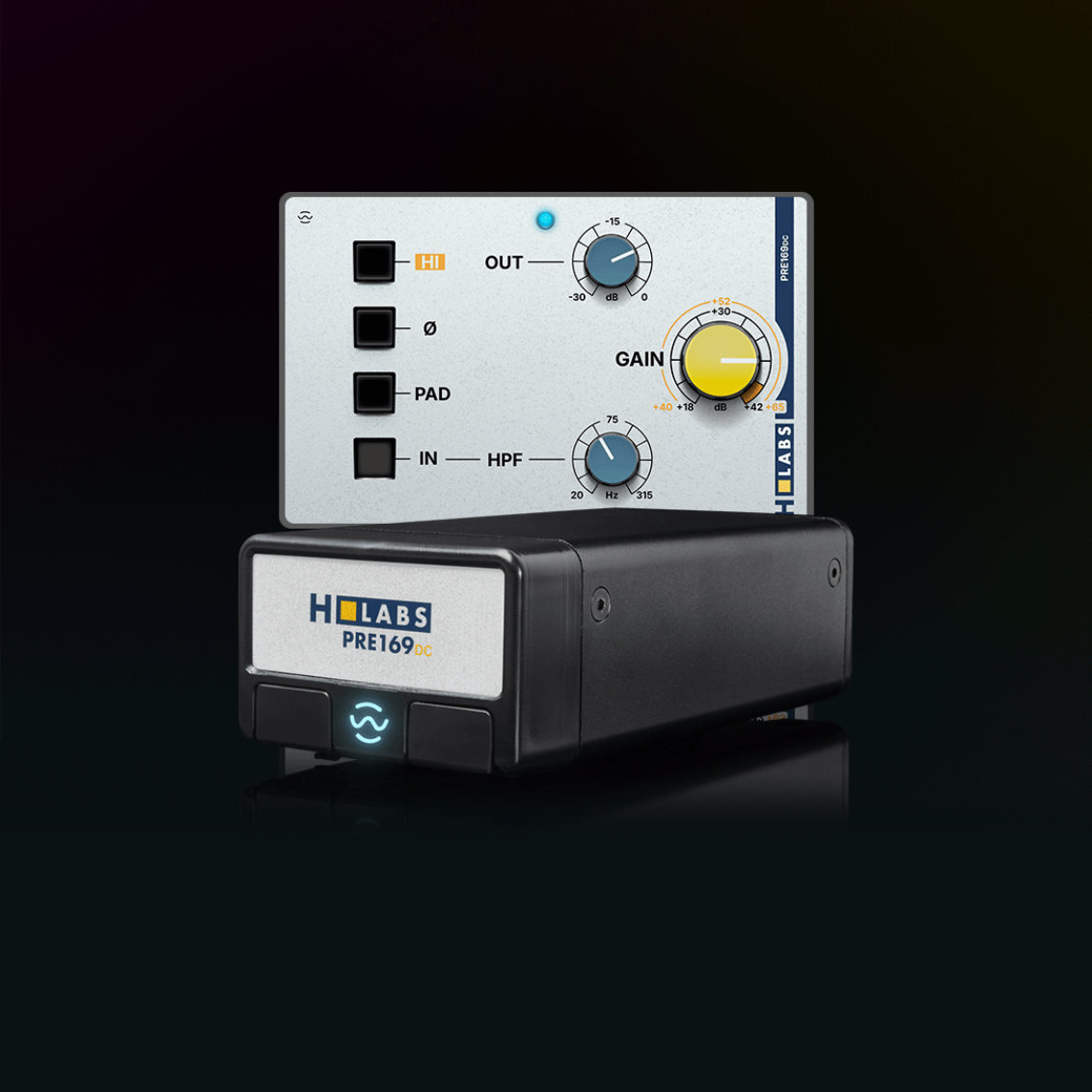 Le PRE169DC reprend l’étage d’entrée du préamplificateur Studer 169. HLabs y a ajouté un transformateur de sortie Carnhill VT24499, identique à ceux utilisés dans certaines consoles Neve 51, afin d’apporter davantage de densité et de caractère harmonique. Pensé pour les microphones à ruban et les sources à faible niveau, le PRE169DC offre plus de 67 dB de gain et intègre un filtre coupe-bas discret très progressif. Comme l’EQ169DC, il bénéficie d’un contrôle numérique complet via SEPIA.