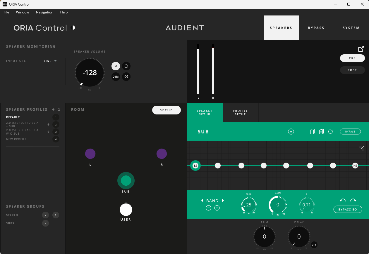 Audient ORIA Mini : connexions (analogiques/S/PDIF), ORIA Control, profils, sub et intégration SoundID Reference