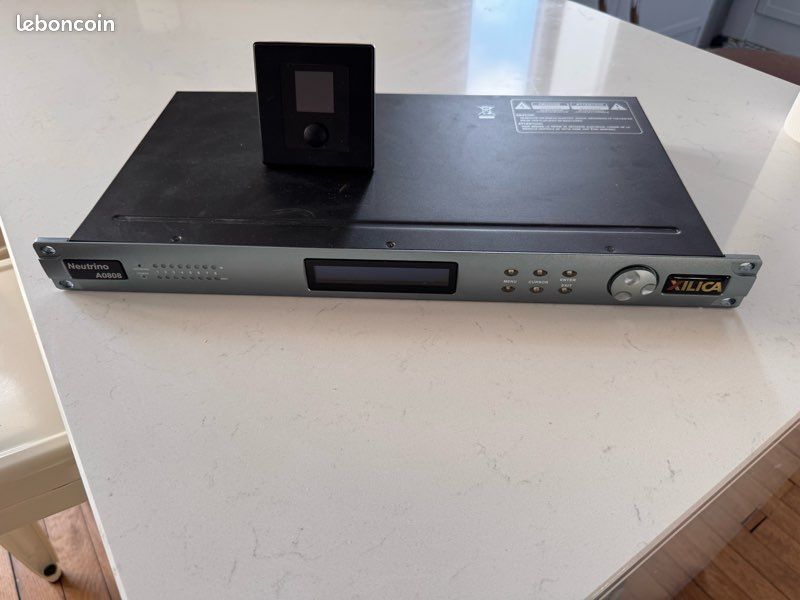 Vends Xilica Neutrino A0808, matrice/processeur numérique 8 entrées / 8 sortiesLa gamme Neutrino est une unité programmable modulaire destinée aux installations ou aux racks pré-configurés. Il est destiné à être associé à des panneaux muraux tel que le "NeuPanel Touch 7" ou les "Mini K1" que je vends également. Vous pouvez concevoir votre propre flux du signal audio et programmer chaque section à votre guise grâce au logiciel "Xilica Designer" .