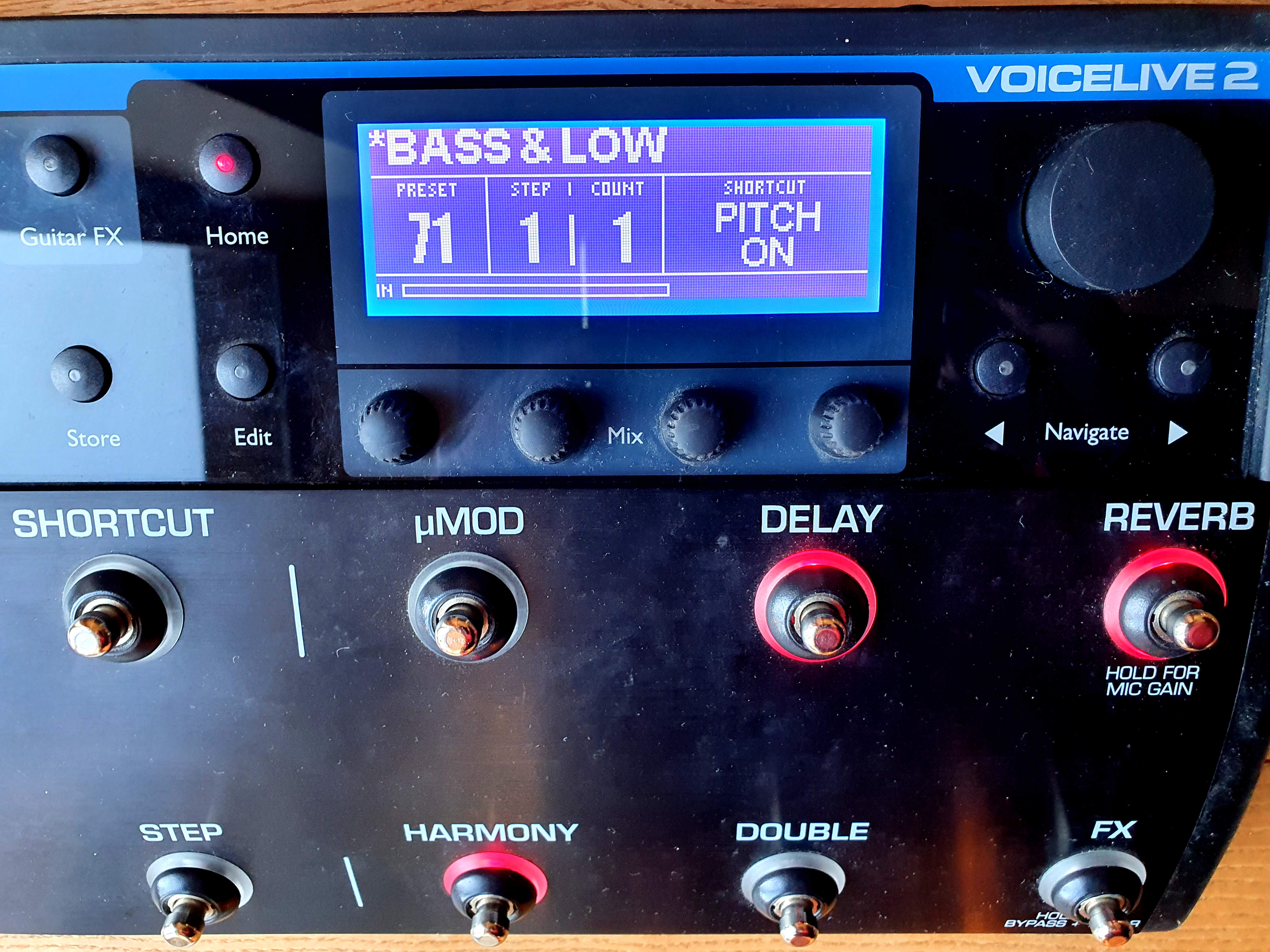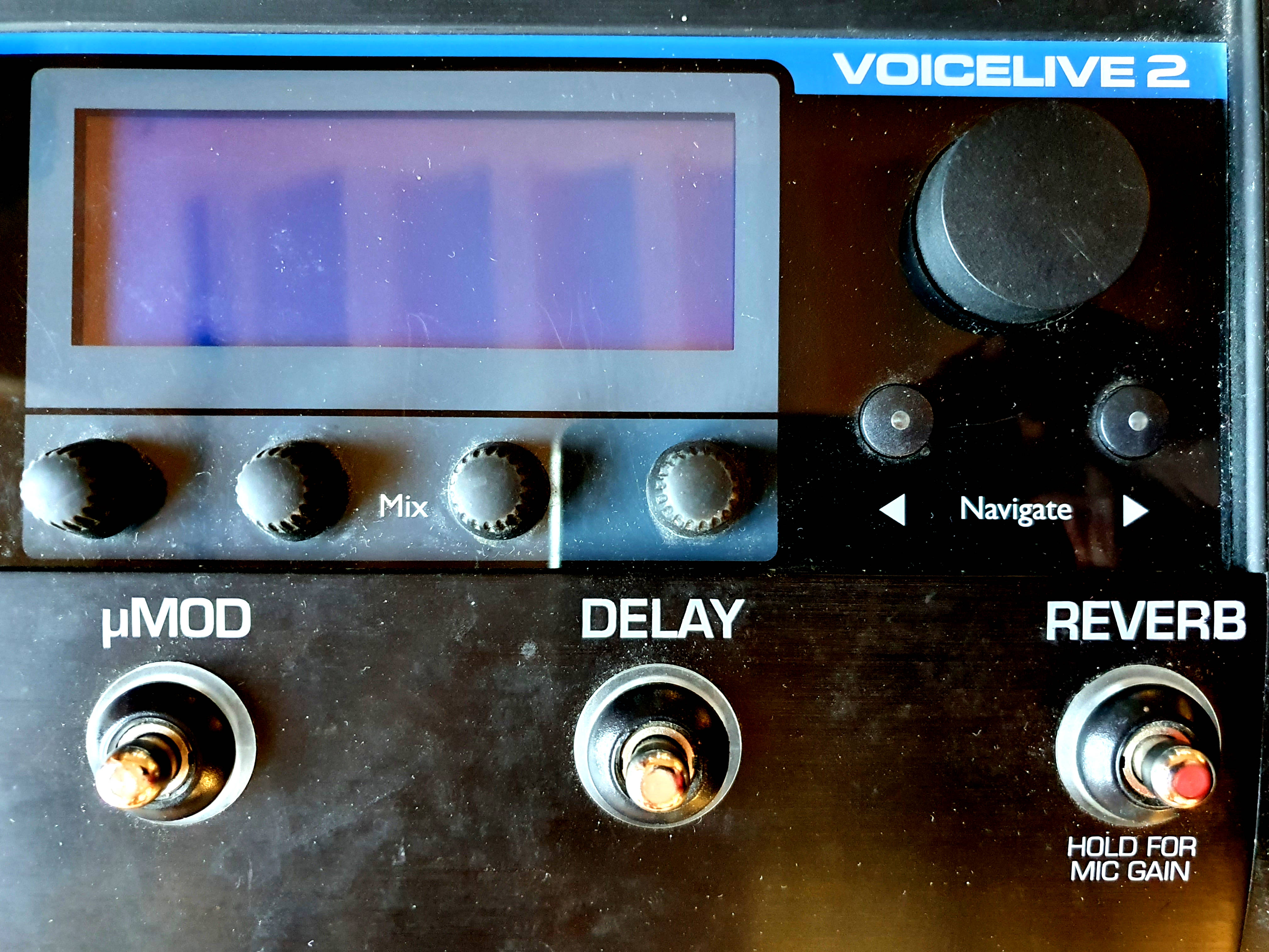 Fiche technique ici : https://fr.audiofanzine.com/processeur-vocal/tc-helicon/voicelive-2/ ou là : http://www.tc-helicon.com/products/voicelive-2/tech-specs/Je l’ai très peu utilisée (uniquement pour des essais à la maison) car c’est compliqué pour moi qui n’ai aucune formation ni expérience dans ces engins numériques, et en plus mon style de chant country-folk ne nécessite finalement pas de pédale d’effet. Donc je revends.