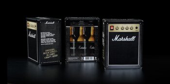 Marshall s’est en effet associé au brasseur artisanal français Mélusine pour créer la Marshall Beer, une bière blonde de 8.6% vendue dans un pack de 6 bouteilles de 33 cl représentant un ampli de la marque.