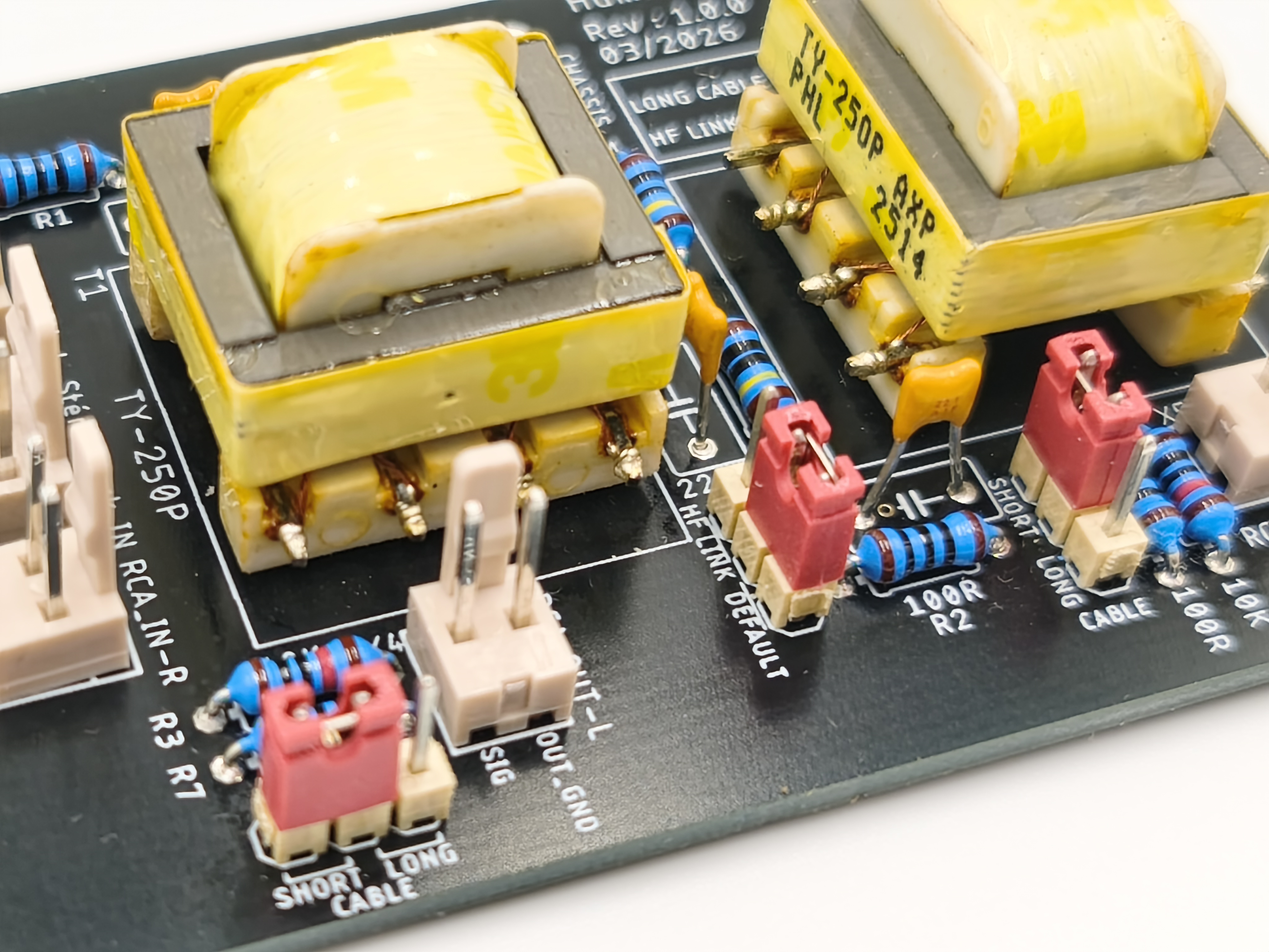 Composants de haute qualité uniquement (KYOCERA, Neutrik, Triad Magnetics, …) approvisionné chez Mouser.