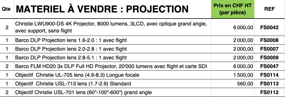 A VENDRE : Matériel de projection pro d'occasion en parfait état de fonctionnement.Les prix sont sur la liste dans les images.